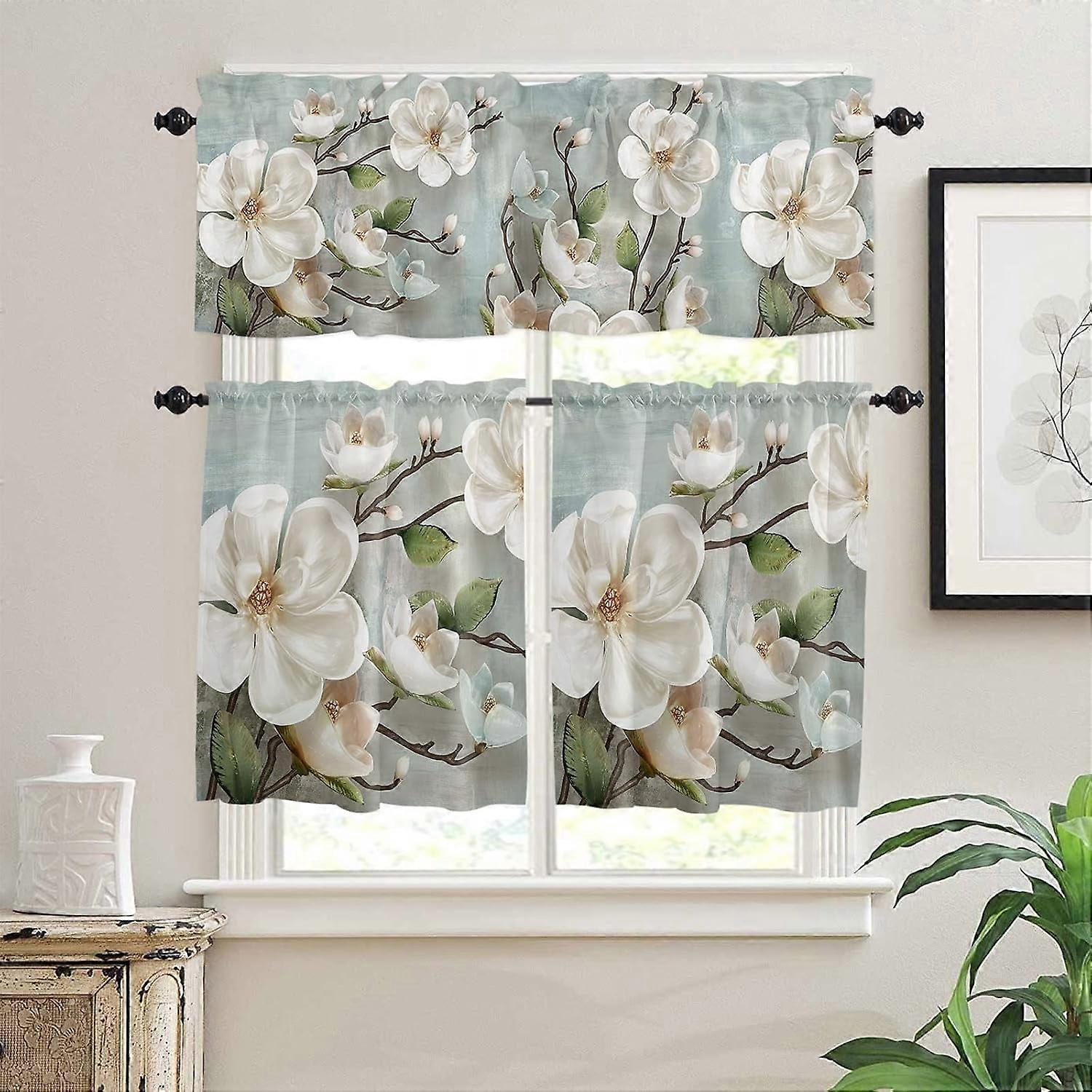 Kitchen Curtain Valance, Coffee Gnome Brown Short Rod Pocket Window Curtain Tiers for Bedroom, Bathroom, 2 Panel, 27.5" W x24 L
