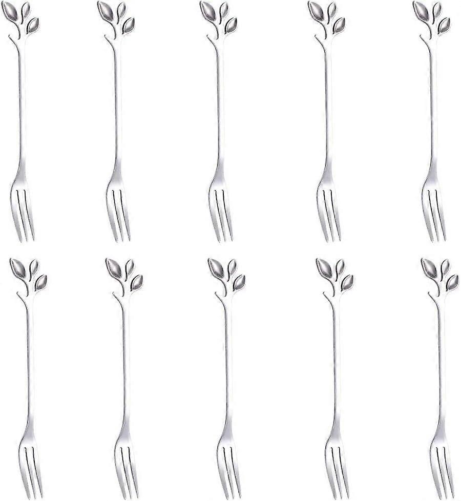 10 Pcs Stainless Steel Silver Leaf Creative Appetizer Cake Fruit Forks Set 4.7