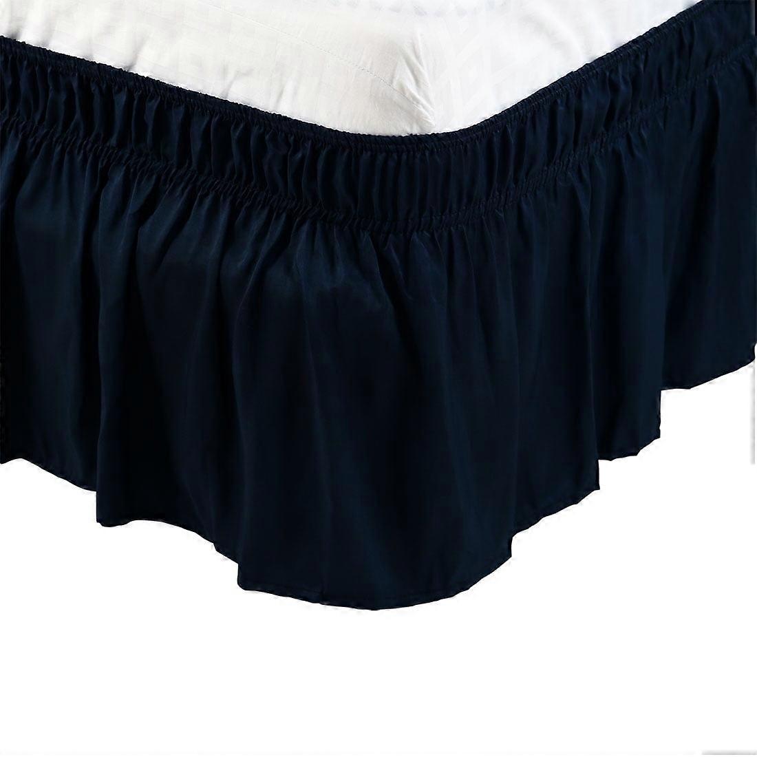 Polyester Wrap Around Dust Ruffle Bed Skirt 15" Drop for Queen Size Bed, Navy Blue