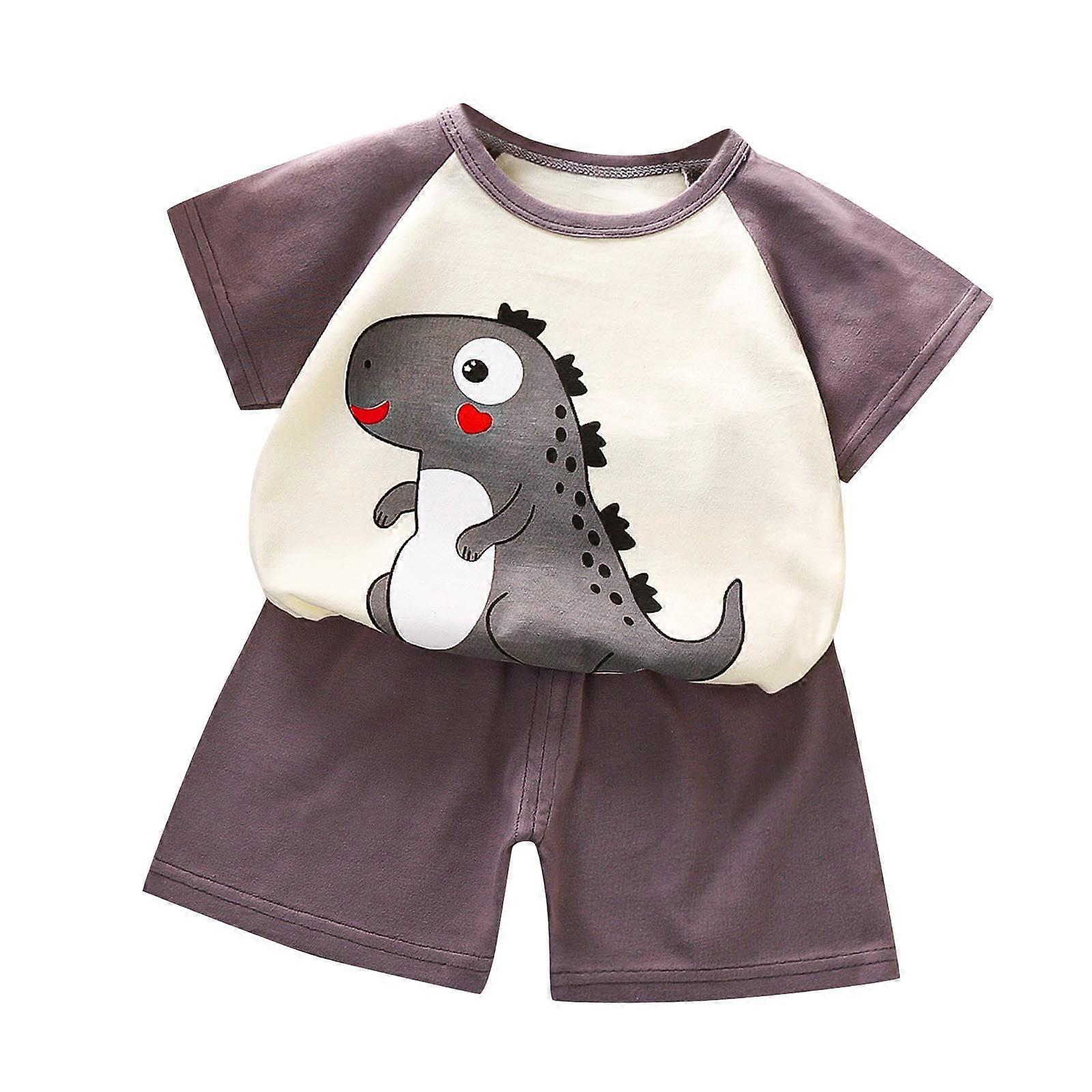 Uxgjfwu Toddler Boy Summer Outfits Cute Printed Short Sleeve Top and Shorts Set Summer Clothes, Sizes 3M-6T,Gray