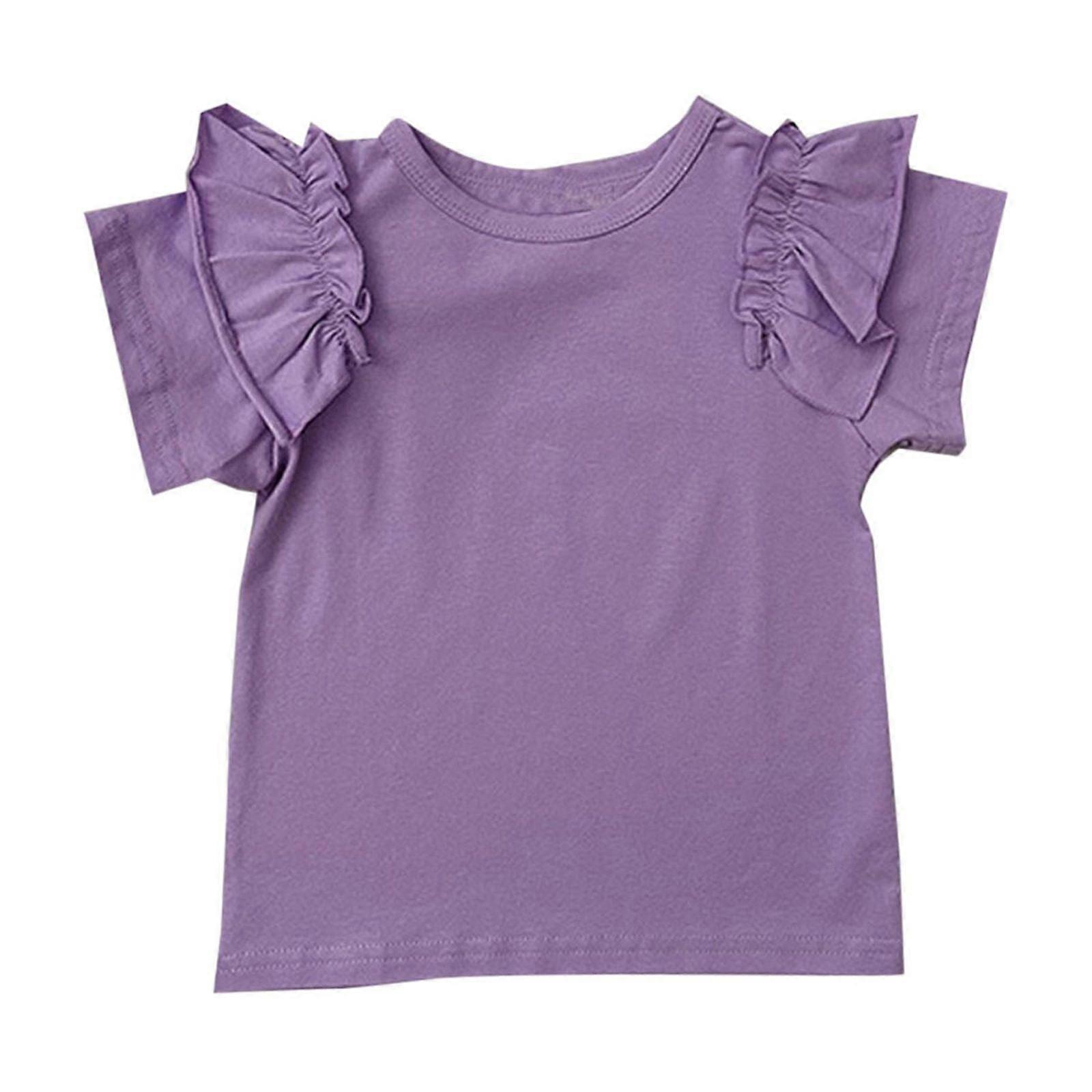 Toddler Girl Clothes, Summer Girls Shirts, Children Solid Color Loose Girl Ruffle Sleeve Round-Neck Blouses Western Style Top, Purple, 2-3 Years