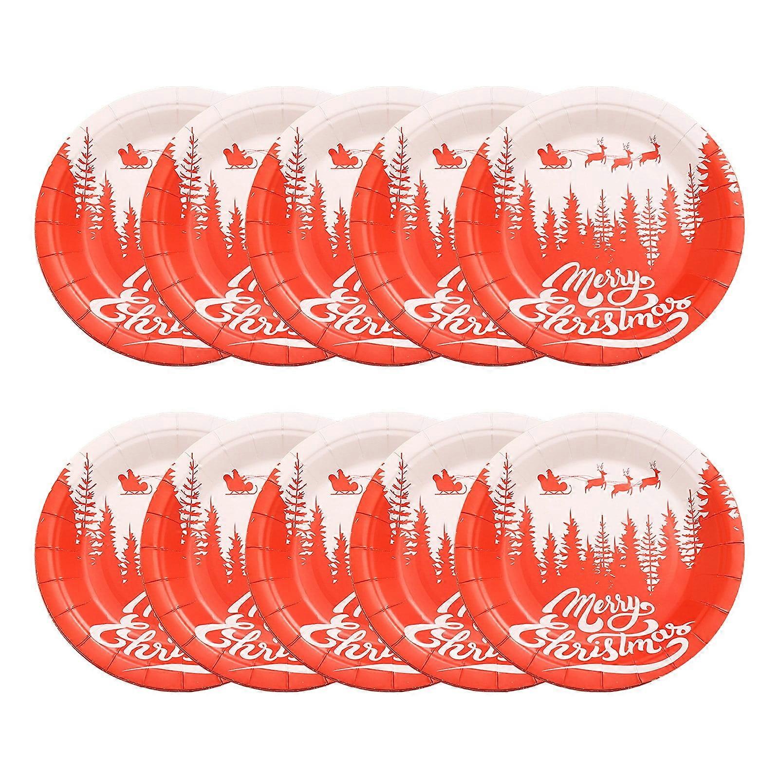 10Pcs Christmas Paper Plates, 9 inch and 7 inch Xmas Santa Snowman Disposable Paper Plates for Christmas Dinner Dessert Party
