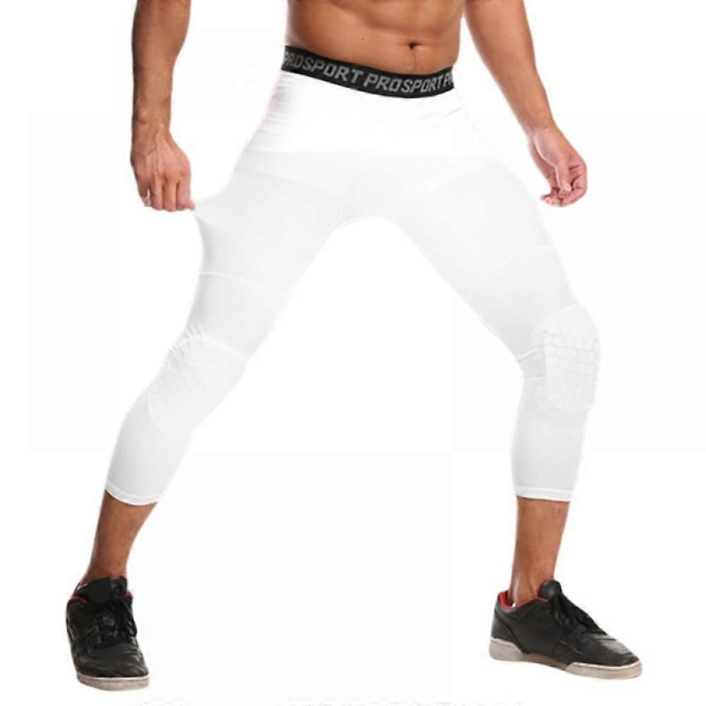 Basketball Pants with Knee Pads Basic Leggings Compression Pants Specifications: Material: 84% nylon, 16% spandex yarn Gender: Men Part: Knee guard Color: black, white Size: S/M/L/XL/2XL/3XL Size--------Weight--------Height S--------35-45kg--------150-160cm M--------45-55kg--------160-170cm L--------55-65kg--------170-175cm XL--------65-75k--------175-180cm 2XL--------75-85kg--------180-185cm 3XL--------85-105kg--------185-195cm Package Included: 1x Basketball Pants with Knee Pads Note: Choose your weight based on your weight. If you have a belly, it is recommended to take one size larger, and if you are thin, it is recommended to take one size smaller. This size chart is for reference only. Due to manual measurement, there may be slight dimensional deviations.Please allow chromatic aberration due to the different shooting light, angle, and monitor. Mens Gym Basketball Pants with Knee Pad Leggings 3/4 Tights Compression Pants Knee Protection Sports Protector Gear Our pad pants are made of 85% nylon+ 15% spandex. This elastic and breathable material provides an improved level of compression, shape retention, quick-drying properties, and maximum comfort. Our basketball pants with kneepads are Two in One design for compression leggings and knee pads for basketballs.; This pant will ensure the stability of knee pads covering knee, patella and top of the tibia during workout or games comparing to knee brace alone.; You will get the maximal protection of knees from this pant against physical contact with the opponent or a hard floor. It also maintains the correct position of muscles to reduce the risk of strains and pulls.