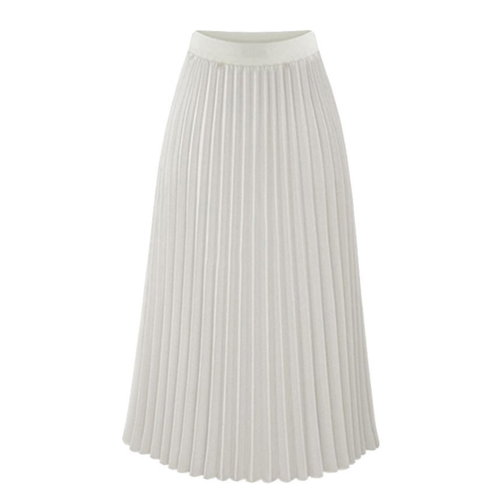 Long Flowy Skirts for Women, Pleated Skirt, Fashion Loose Casual High Waist Solid Long Ankle Pleated Skirt White M