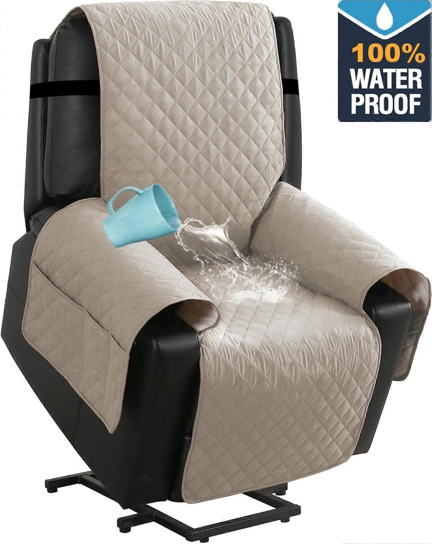 100% Waterproof Recliner Chair Cover,Non-Slip Elderly Electric Power Lift Recliner Slipcovers, Machine Washable with Side Pockets (Pale Oak)