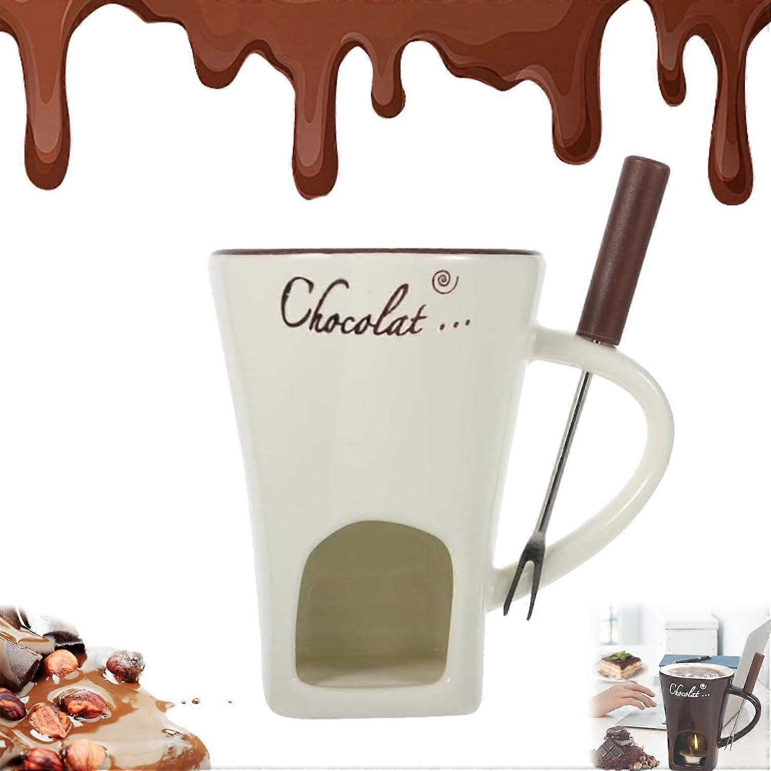Ceramic Chocolate Fondue Cup Set with Forks – Tealight-Compatible, White, for Date Night, Birthday, Wedding Gifts