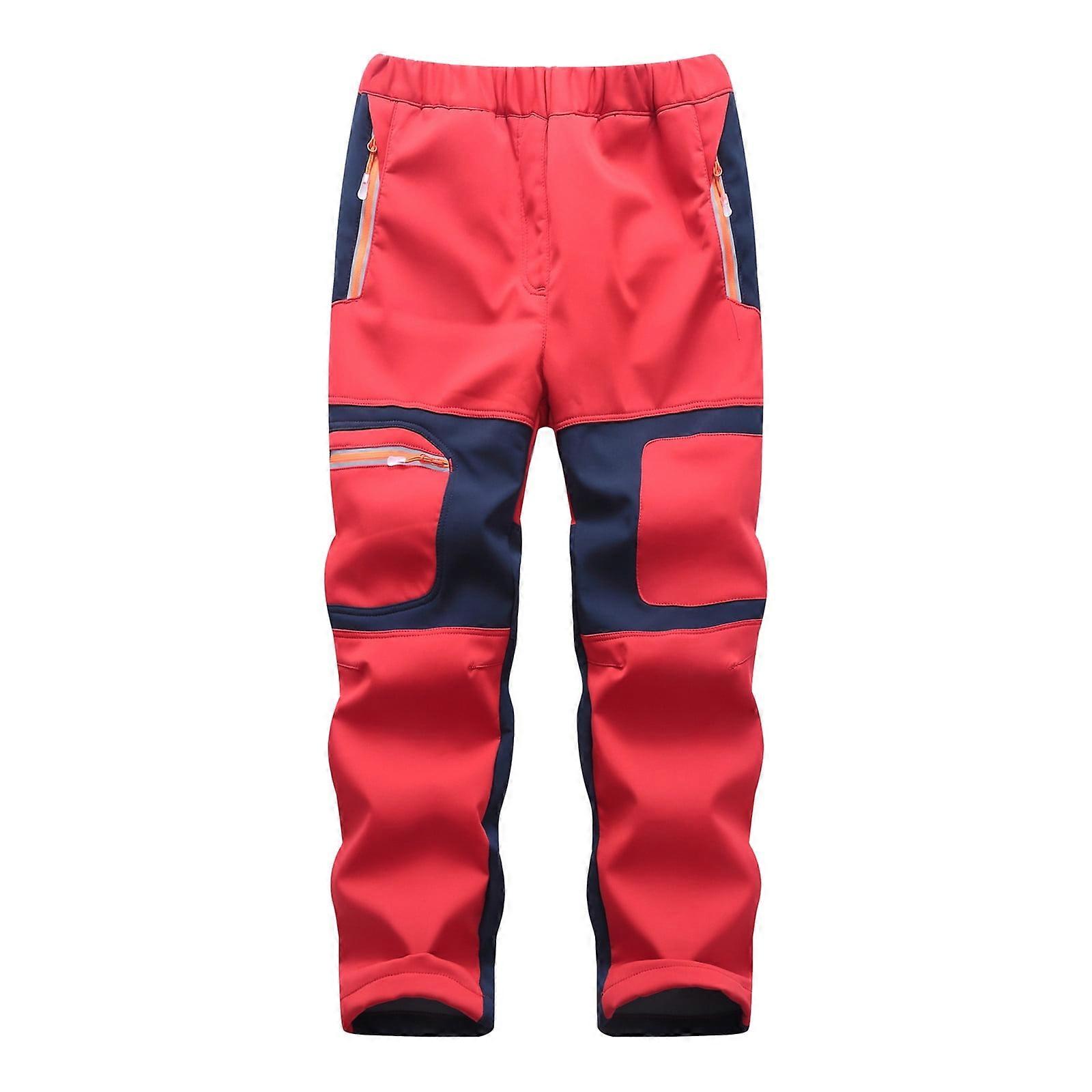 Fashion Kids Snow Pants Boys Girls Plush Solid Color Keep Warm Windproof Waterproof Outdoor Hiking Ski Pants, Sizes 5-16Y,Red