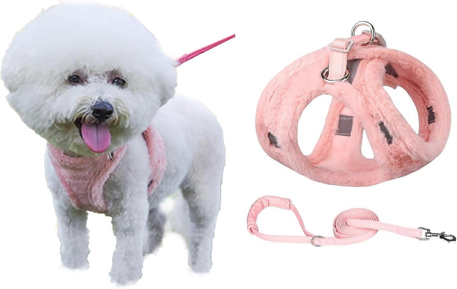 Dog Harness Vest No-Pull Winter Fleece Vest Easy Walk Escape-Proof Reflective Harness Leash Set for Small Medium Pets (S,Pink)