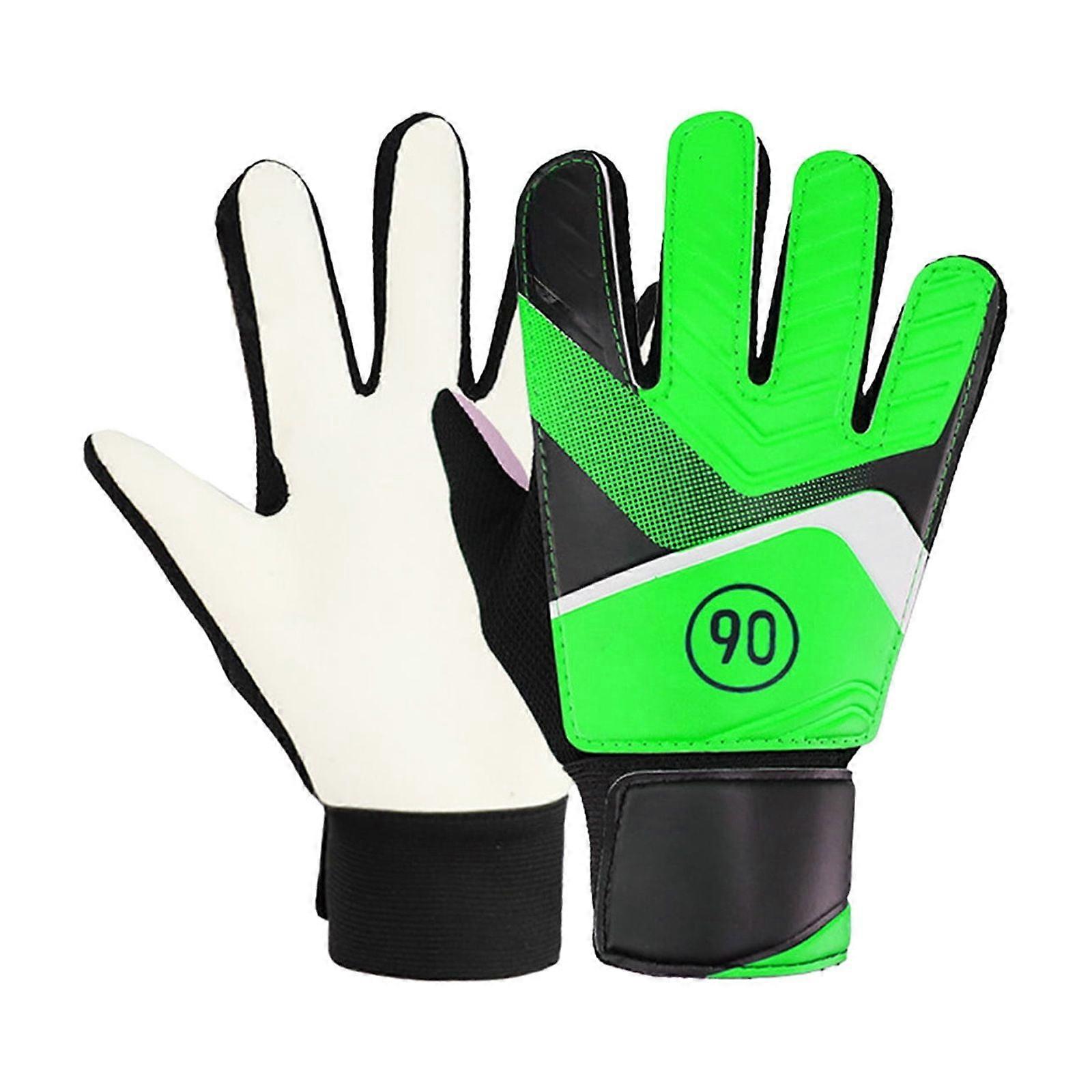 Soccer Gloves, Kids Goalkeeper Protective Gear Rubber Palms Shock Absorbing Youth Football Training Equipment Breathable Mesh Back Sports, Green-S