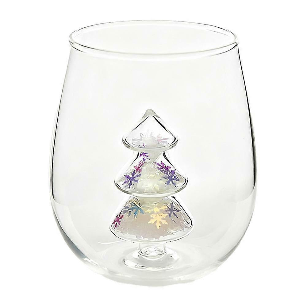 Christmas Glasses Drinkware – Crystal Stemless Wine Glass with 3D Glitter Xmas Tree, Compatible with Home Bar & Holiday Party
