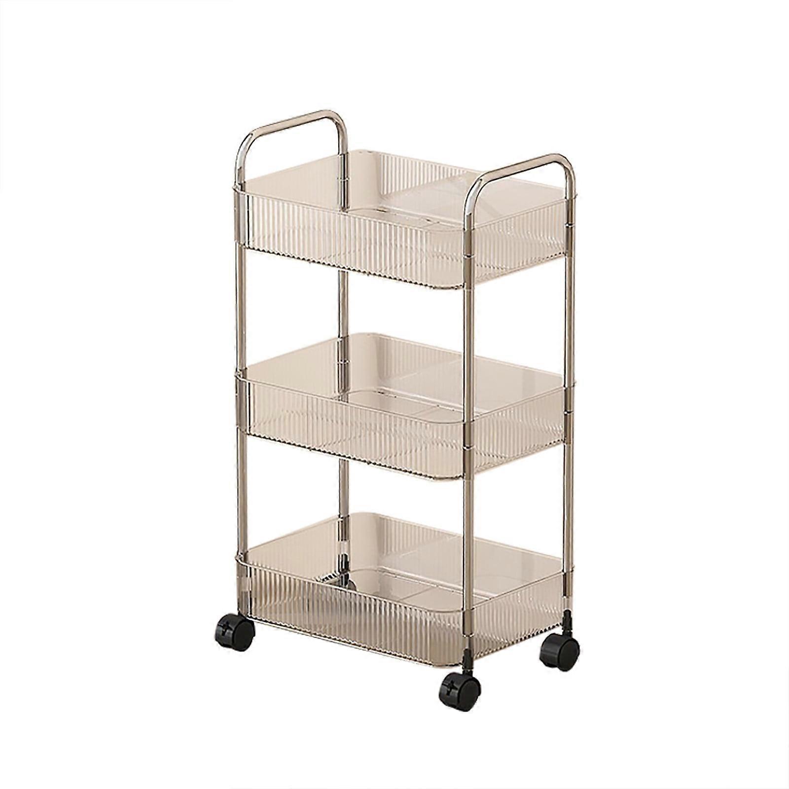 Japceit 3-Tier Rolling Utility Cart with Drawer, Plastic Shelf & Metal Wheels – Compatible with Kitchen, Bathroom, Living Room, Office