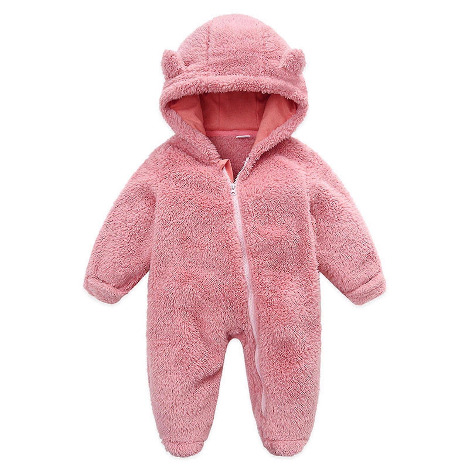 Mikilon Baby Fleece Footie Snowsuit, Hooded Warm Romper for Girls & Boys 0-3M, Pink – Compatible with Winter Outfits