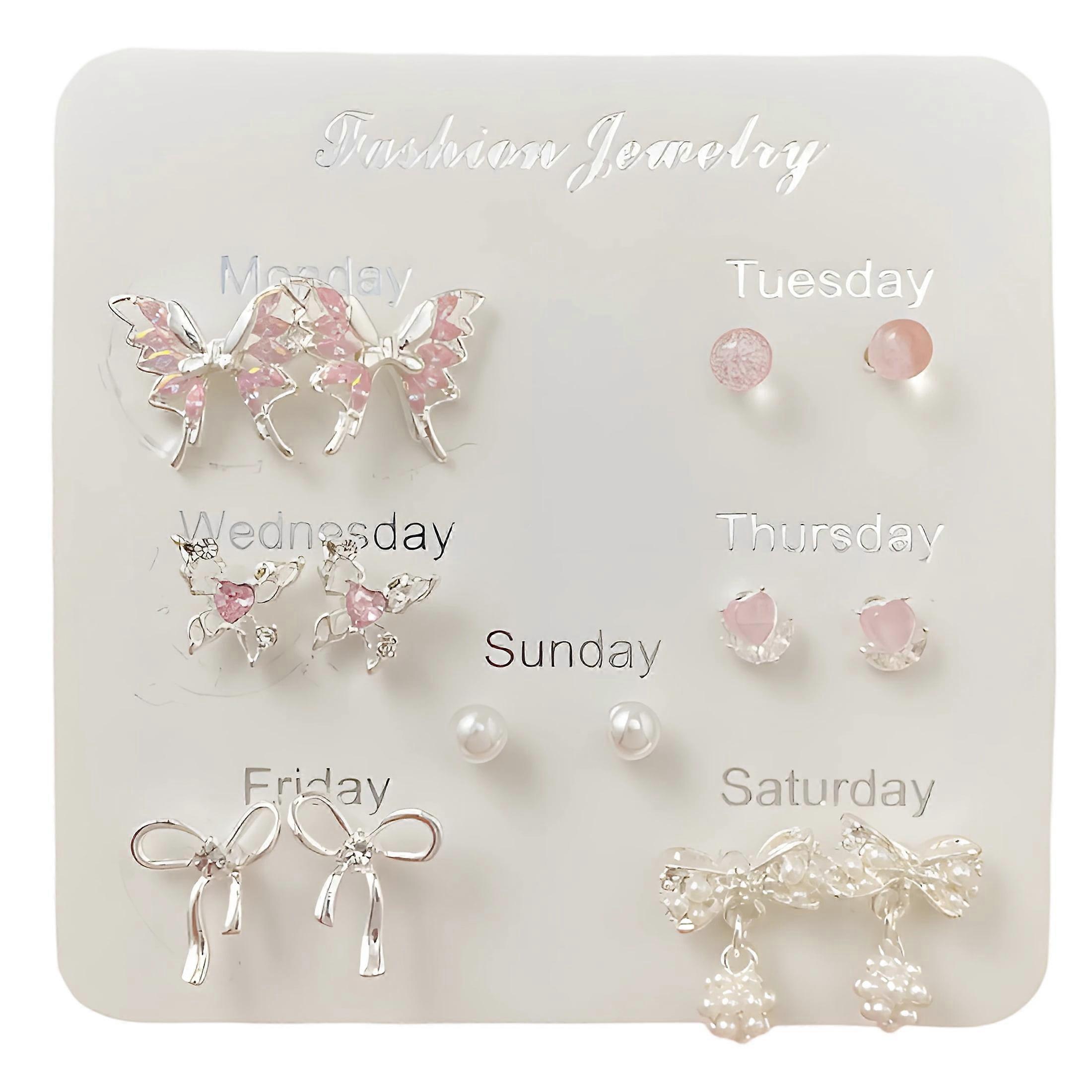 DESIGNICE Earring Set,Bow Pearl Earring Sets for Women,Low Allergenicity Studs Earrings for Women Small Earrings,7Pairs