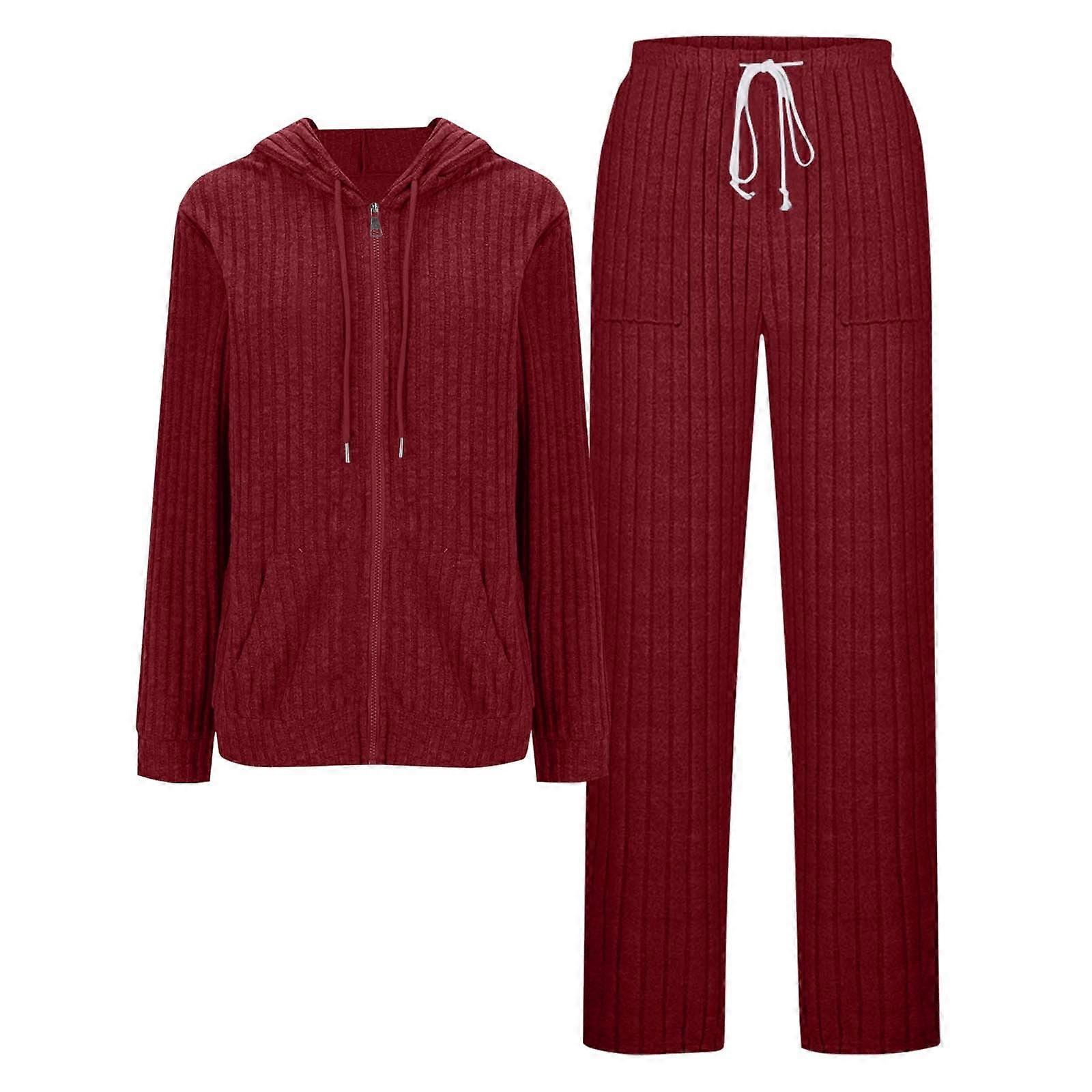 Women's 2-Piece Hooded Tracksuit Set: Zip-Up Hoodie with Pockets + Jogger Pants, Elastic Waist, Solid Color, Loose Fit