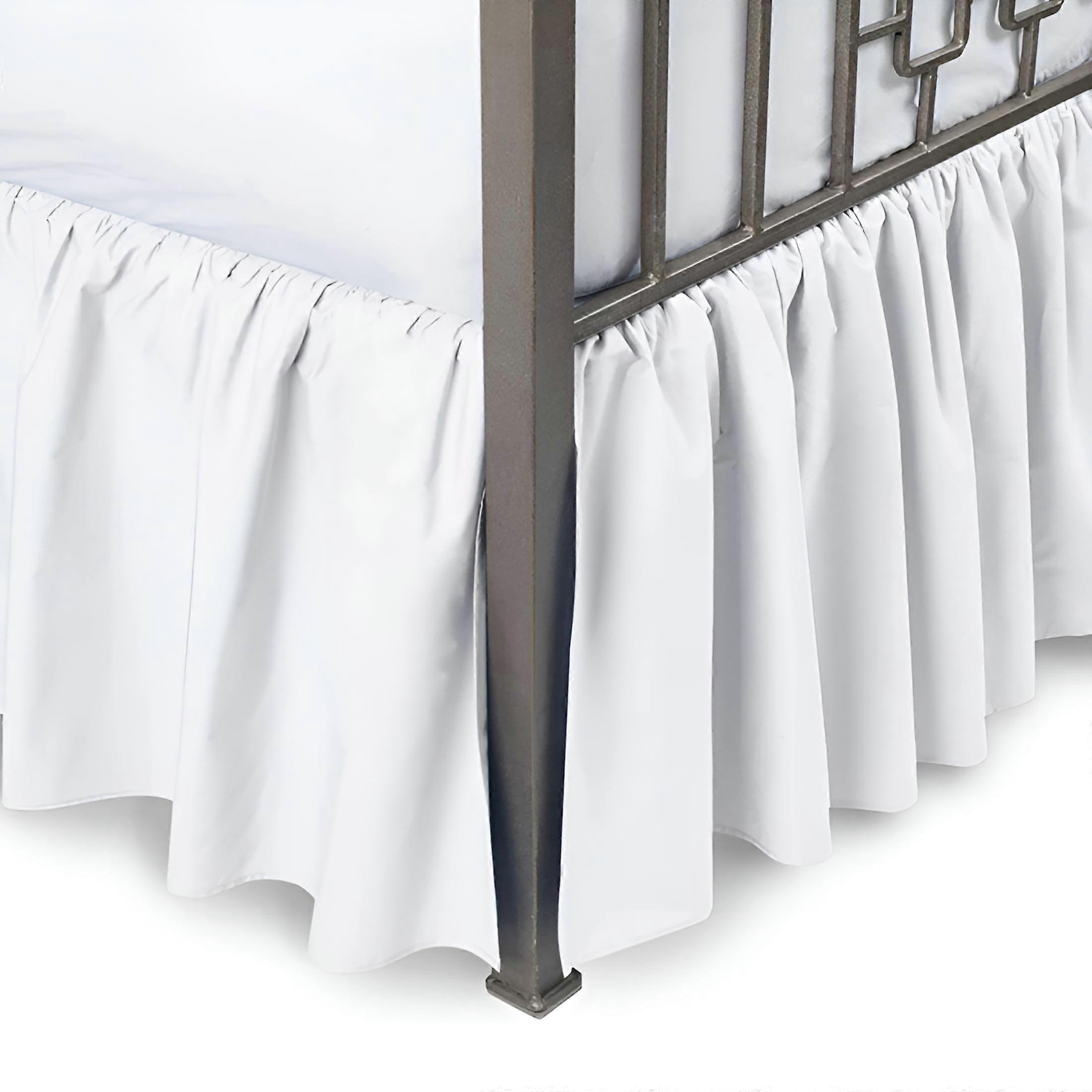 Ruffled Bed Skirt - A Perfect Finishing Touch to Your Bed! Improve the look of your bedroom with this ruffled bed skirt. Made with a blend of cotton and polyester, this premium quality bed skirt wears well and is long-lasting. The bed skirt is neatly ruffled around three sides with split corners and works best on beds with bed posts that get in the way of ordinary bed skirts. Available in multiple sizes including bed skirt full bed and full size bed skirt, this full bed skirt elegantly conceals your box spring and under-bed storage while adding a polished, cohesive look to any bedroom decor. Egyptian Cotton Bed Skirt Luxurious and Durable - The Ruffled Bed Skirt is a three-sided skirt made from Egyptian cotton. This luxurious bed skirt is the perfect finishing touch to your bed set. Full Size Ruffle Bed Skirt with Split Corner measures 54 x 75 inches + 15 Inch Drop Great Quality - Luxuriously soft 800-Thread-Count Made with Single Ply Fabric & Super Soft. Closely woven with single-ply yarns, the fabric is lightweight and soft. Care Instructions: Machine wash in cold water with similar colors. Tumble dry low. Do not bleach.