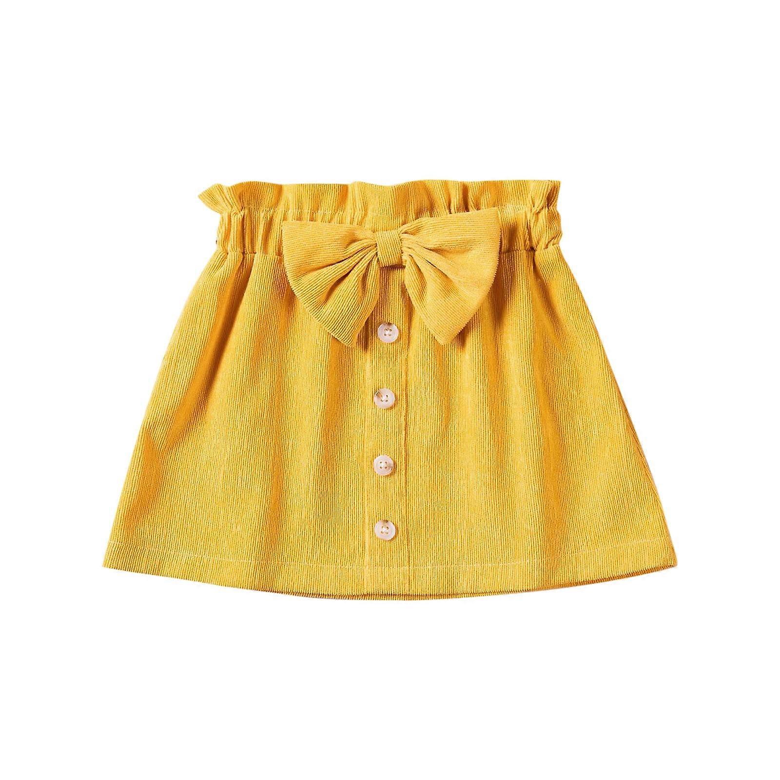 Skirts for Girls,Girls Skirts,Girls' Spring Corduroy Solid Color Bow Breasted Half Length Skirt Yellow 1-2 Years