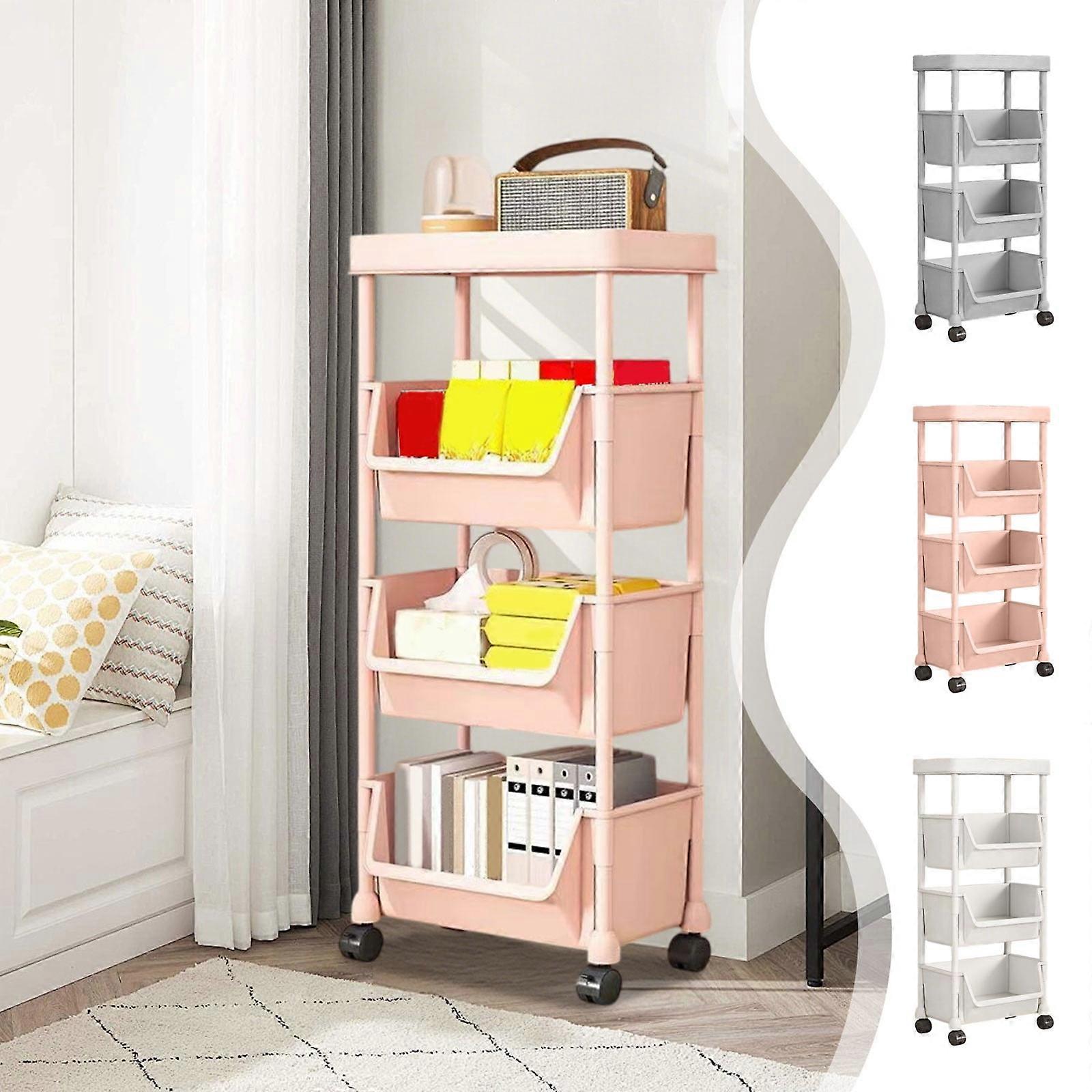 4-Tier Rolling Utility Cart with Drawer, Plastic Shelves & Wheels – Compatible with Kitchen, Bathroom, Living Room, Office