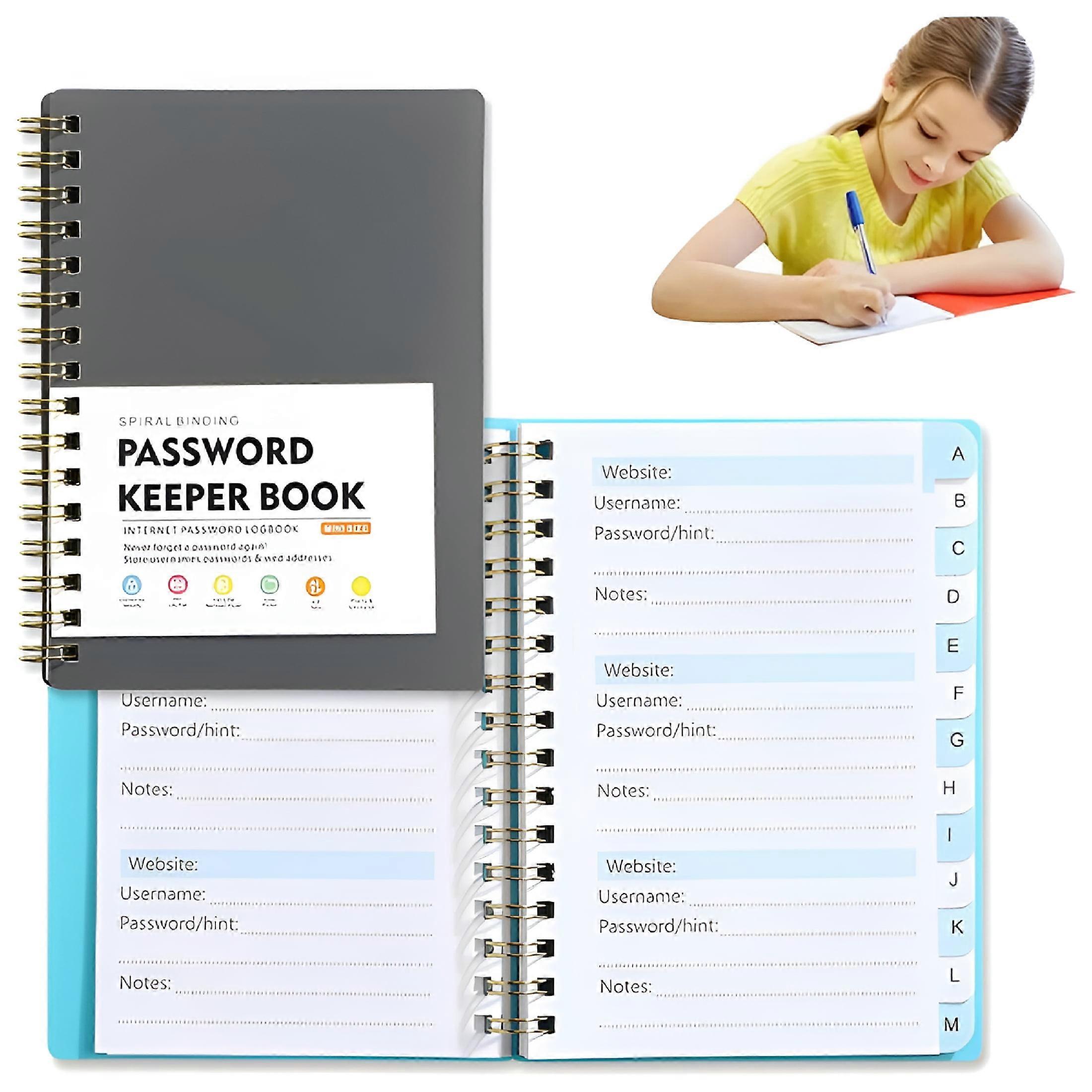 Spiral Address Book with Alphabetical Tabs Leather Password Book Password Log with Personal Alphabet Label for Internet Addresses and Passwords