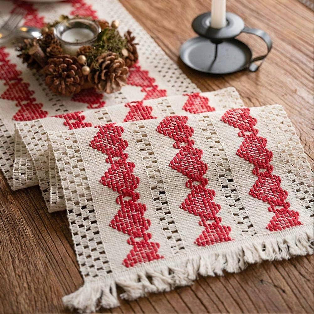 Boho Burlap Red Heart Table Runner, 12x72in – Rustic Woven Cotton with Tassels, Farmhouse Kitchen & Wedding Decor, Compatible with Christmas Holiday