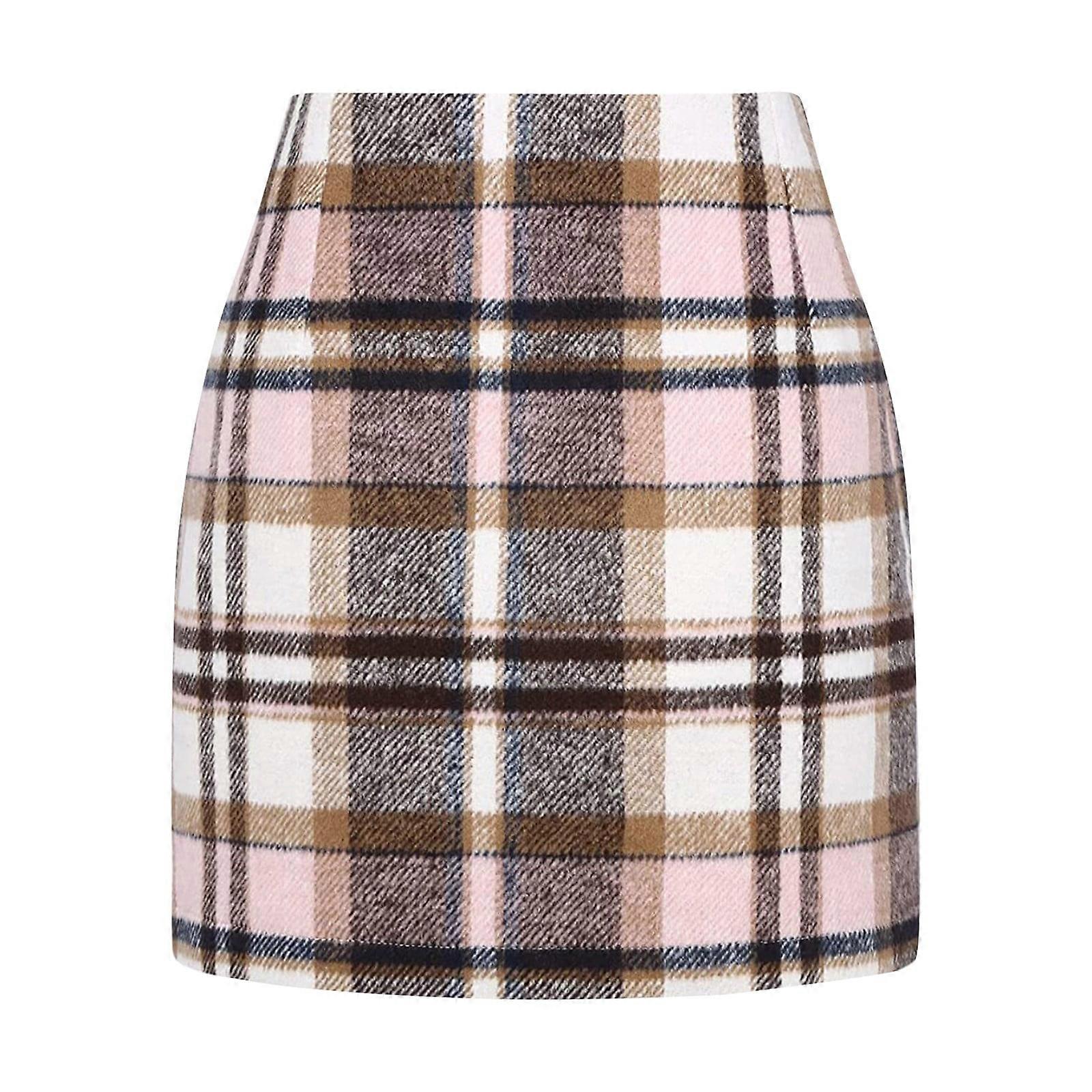 Women High Waist Plaid Skirt Bodycon Pencil Wool Mini Skirts Club Basic Leisure Dailywear