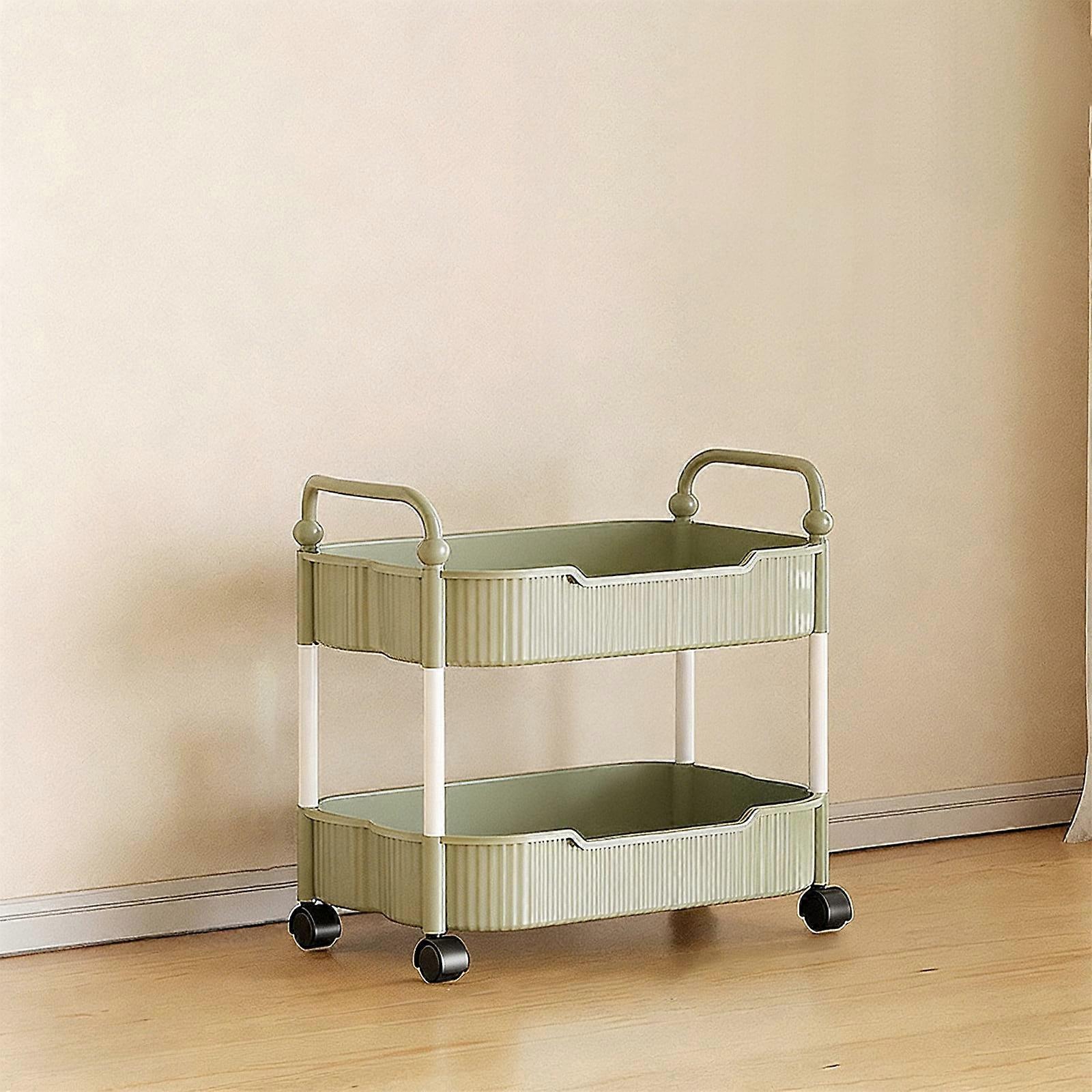 2-Tier Kitchen Storage Cart with Armrests, Mobile Organizer for Kitchen, Bathroom, Living Room (Green)