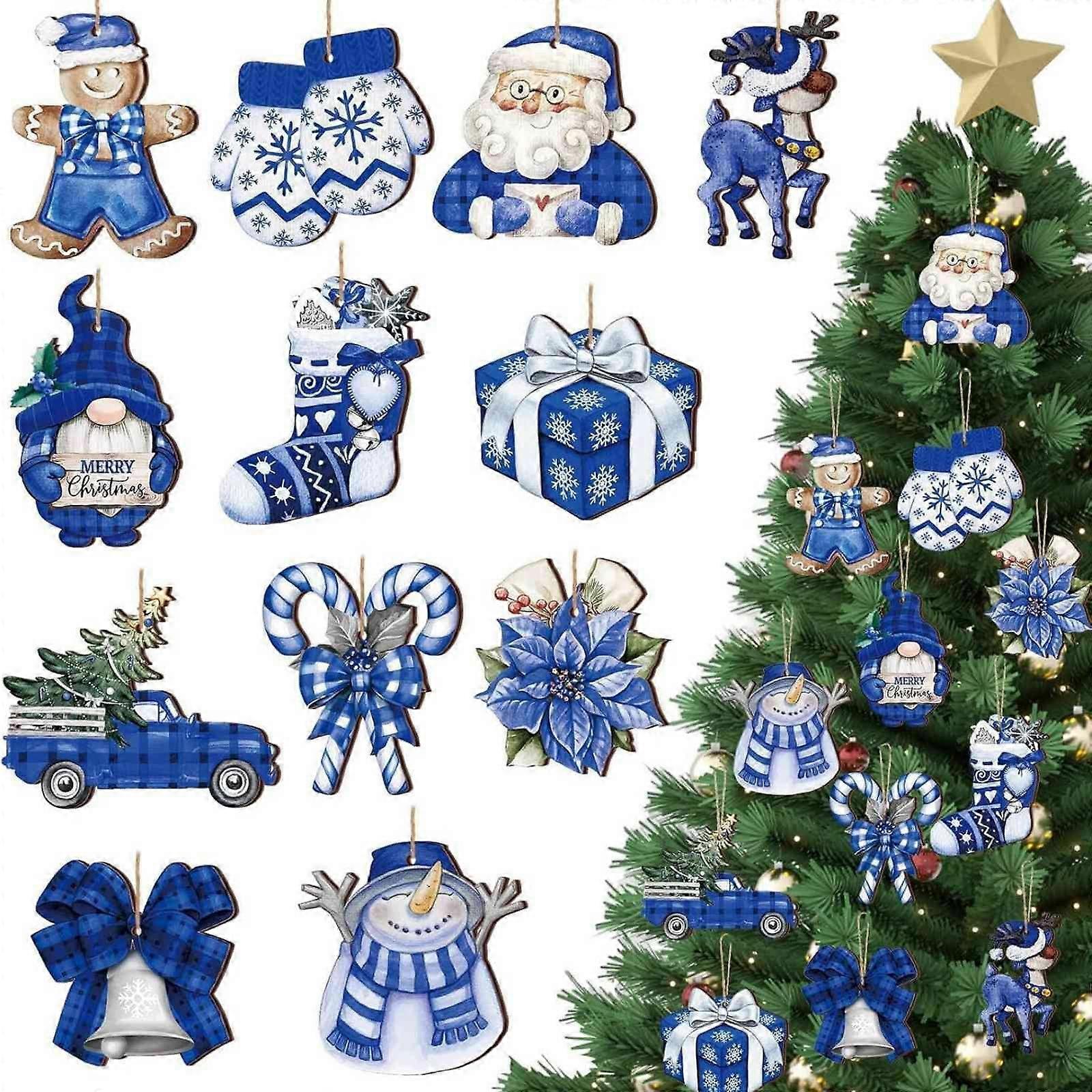 24 Pieces Gnome Ornaments for Christmas Tree, Assorted Gnome Wooden Hanging Ornaments Christmas Tree Hanging Decorations Holiday Party Supplies