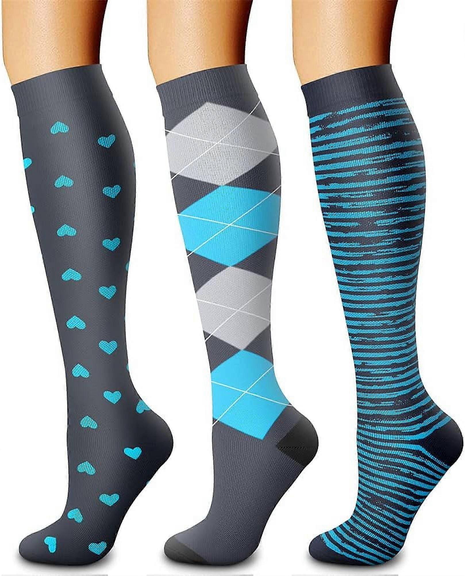 3 Pairs Compression Socks for Women & Men Circulation 15-20 mmHg is Best Support for Athletic Running Cycling