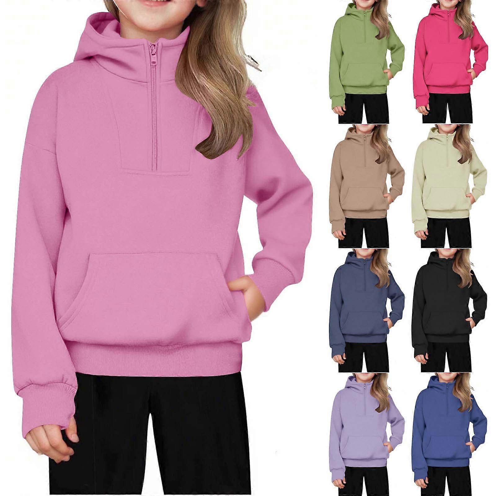 Girls' Long Sleeve Zip-Up Hoodie Sweatshirt, Fleece Pullover for Ages 5–14, Compatible with Kids’ Sizes