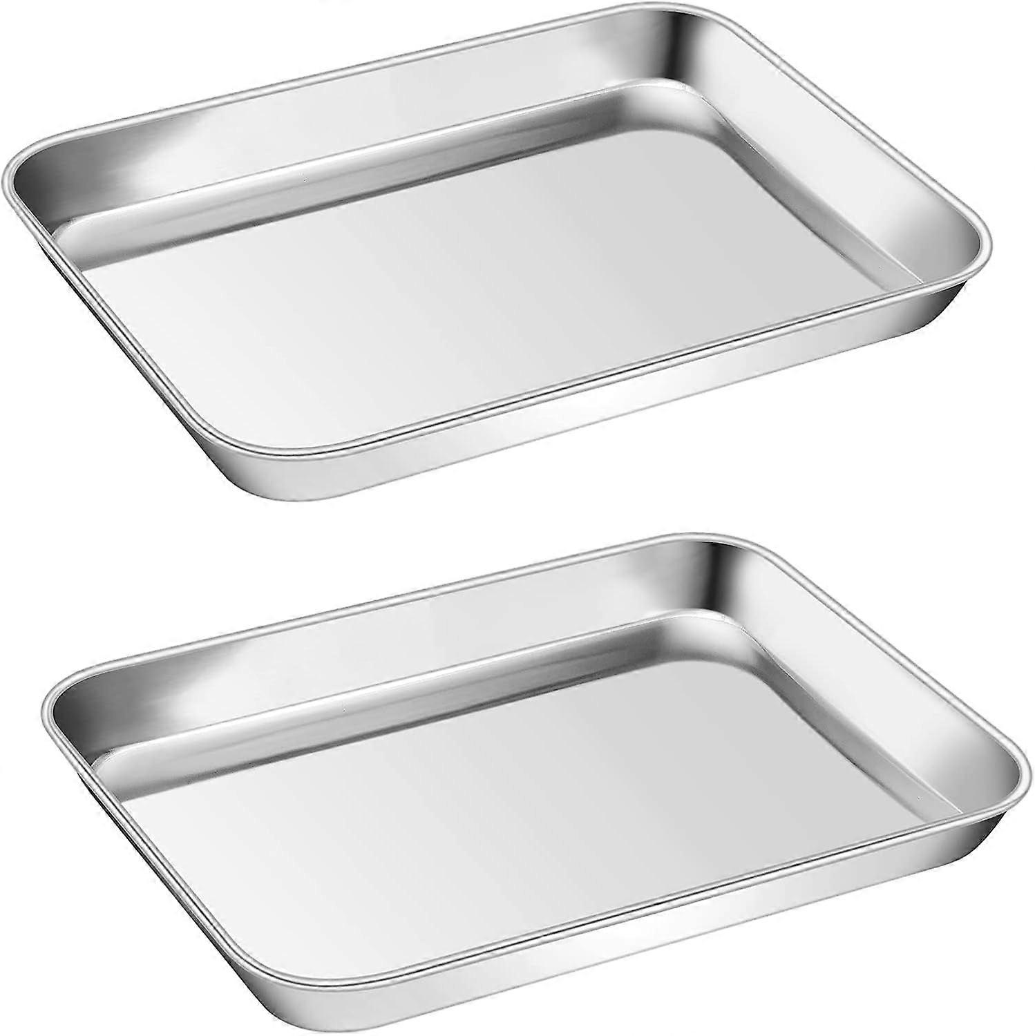 2-Pack Stainless Steel Square Baking Pans (9x6.7x0.98"), Mirror Finish, Rust-Free, Dishwasher Safe
