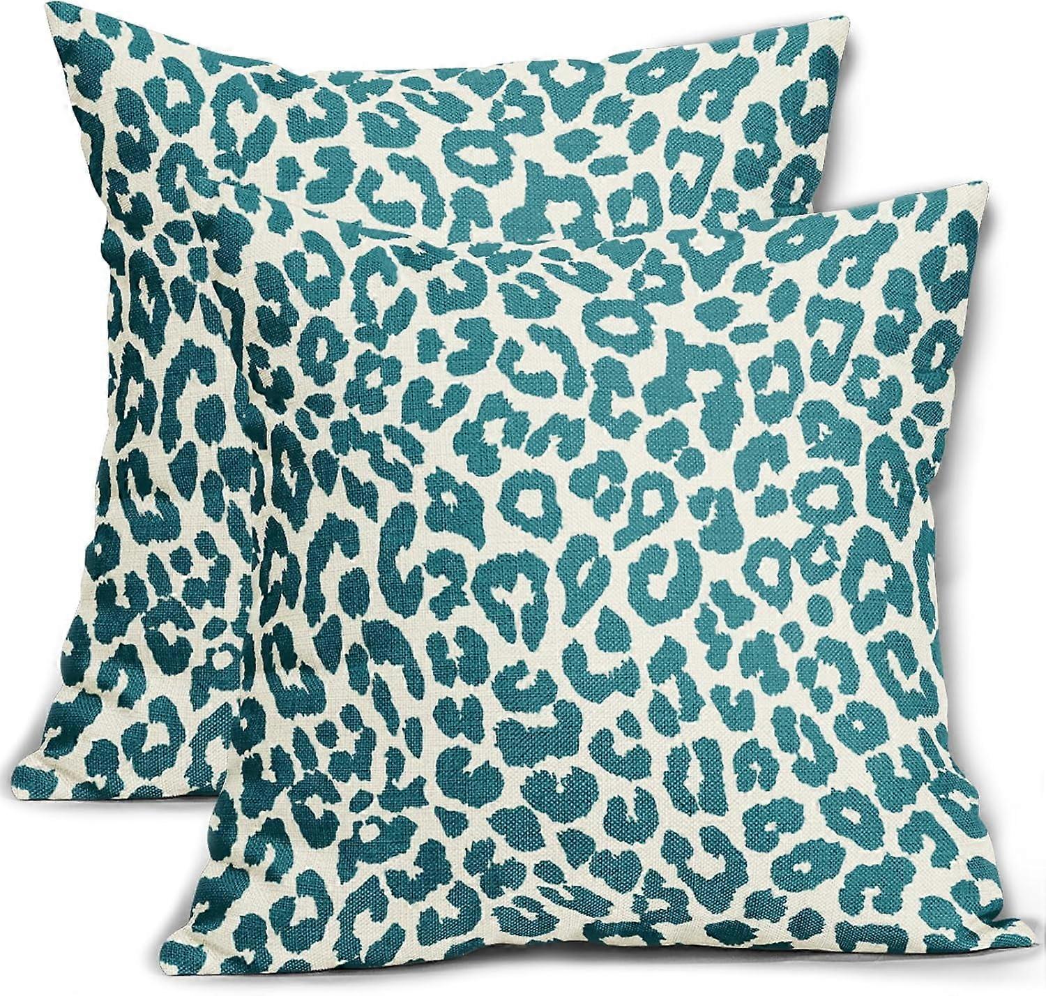 Teal Leopard Print Pillow Covers 18x18, Set of 2, Compatible with Outdoor & Indoor Use, Zipper Closure