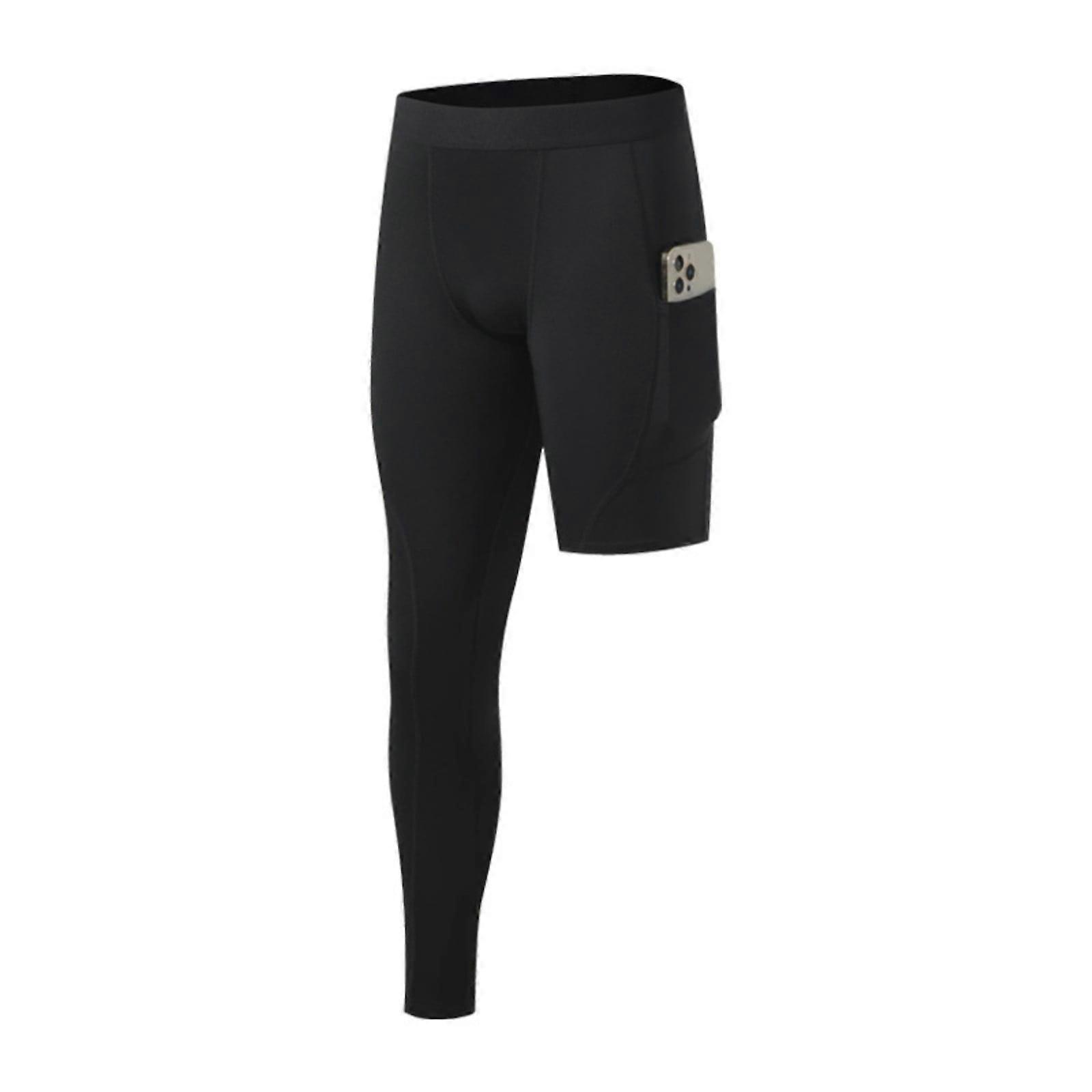 Men's One Leg Compression Tights for Basketball – Quick Dry, Pocketed, Base Layer, S-2XL, Compatible with Basketball