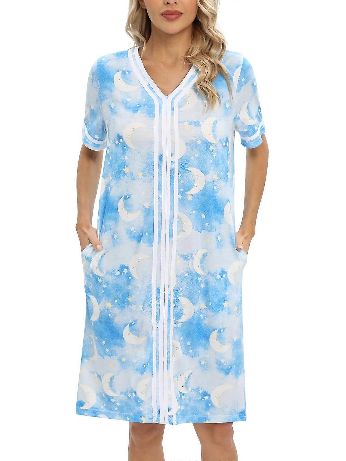 Women Floral Short Sleeve Pajamas Robes Thin Lightweight Homewear Sleepwear with Pockets S-2XL