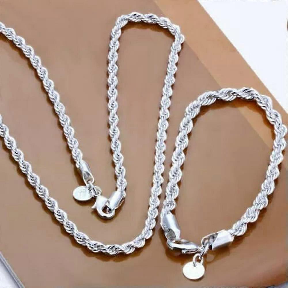 EASTIN Women Men‘s 925 Silver Filled 4MM Rope Chains Necklace Bracelet Delicate Jewelry Sets