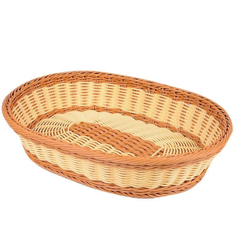 Description:  [Multi-purpose] - These quality woven bread baskets are perfect for restaurants, outdoor picnics, and table service or display. Great for all kinds of bread, candy, cookies, finger foods, fruits, vegetables, and other snacks. It can also be used as a universal tray for keys, wallets, cell phones, etc. [Durable] - These more durable baskets are made of durable hand-woven polypropylene fiber without hard serrated edges, and the edges and bottom are reinforced with internal steel wire. [Dishwasher and Microwave Safe] - Simulated rattan kitchen bread storage baskets that won't warp like natural rattan. Size: 30*20*7cm. [Safe and Smooth] - Made of safe faux rattan material, this bread basket can be healthy to store food. When you use these baskets, their smooth woven straps can protect your hands from injury. [Use] For fermenting dough or decorating. After the dough has risen, turn it out onto the pan and bake. The bread will take on a gorgeous pattern that surrounds the dark golden crust. Ideal for the most experienced bakers and novices in the home. Comes with a linen liner that is removable for cleaning and reusable. Specification:  Material: Polypropylene fiber Size: 30*20*7cm/11.81*7.87*2.76inch Color: Brown, beige, multiple, coffee Weight: 210g (approx.) Package: OPP Package Includes: 1 * bread basket Note:  1. Manual measurement, the size will have 0.5-2mm error, subject to the actual item. 2. Due to differences in light and screen, the color of the goods may be slightly different from the picture. [CLEARANCE PRICE]Bread Basket Dishwasher And Microwave Safe for Food Fruit Vegetables
