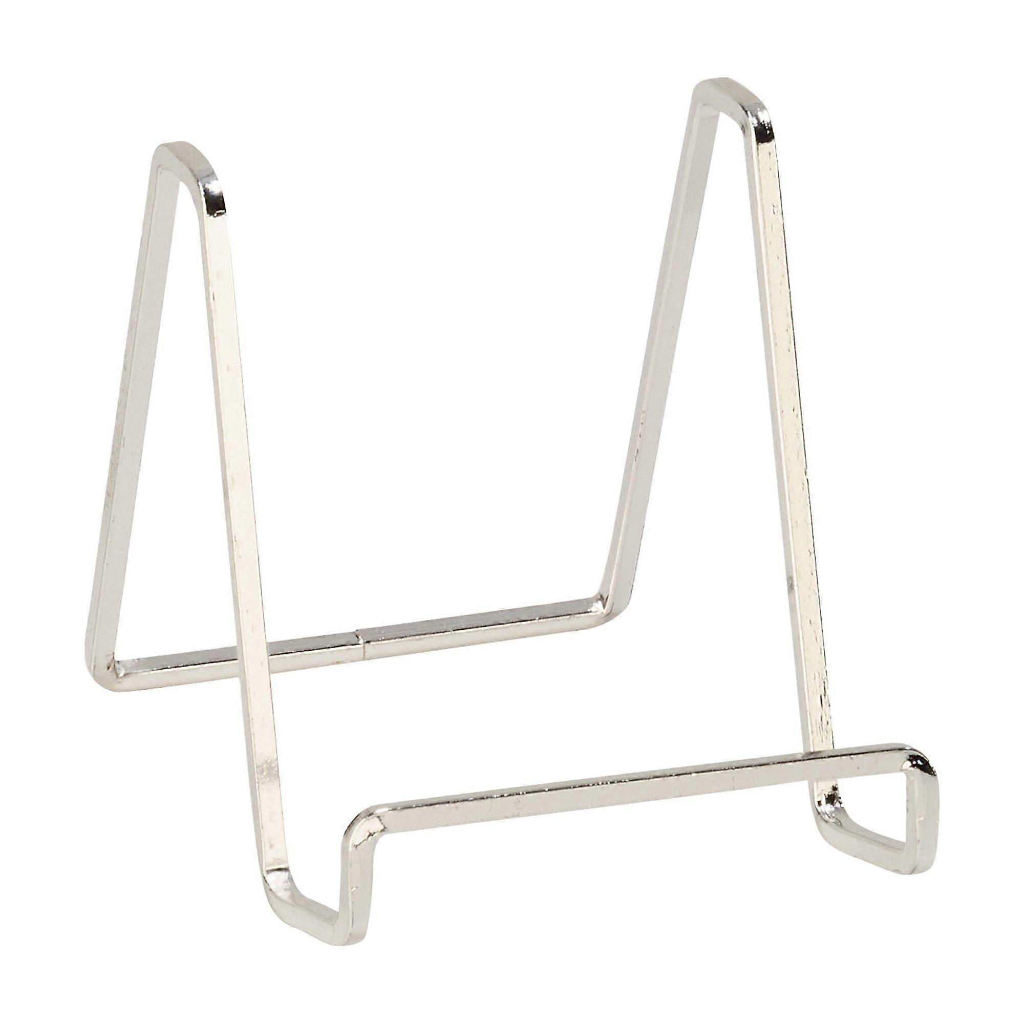 Add a touch of elegance with this 4" Silver plated stand. The stand features a smooth plated finish with a square wire that gives plates, artwork, framed photographs and much more a clean look. The stand is handcrafted from a single wire and fits items from 7 to 14 inches. Bright silver plated finish Display plates, artwork, photographs and more Fits items 7 to 14 inches tall Constructed from a single wire