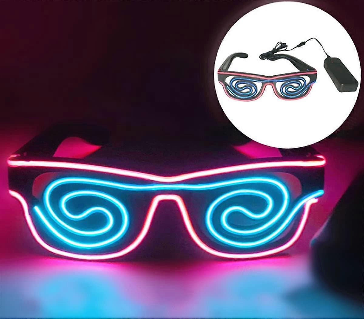 LED Light Up Glasses, Neon Glasses LED Spiral Light Glasses Adjustable Flash Glasses with Wired Control Battery Case for Halloween Christmas Party