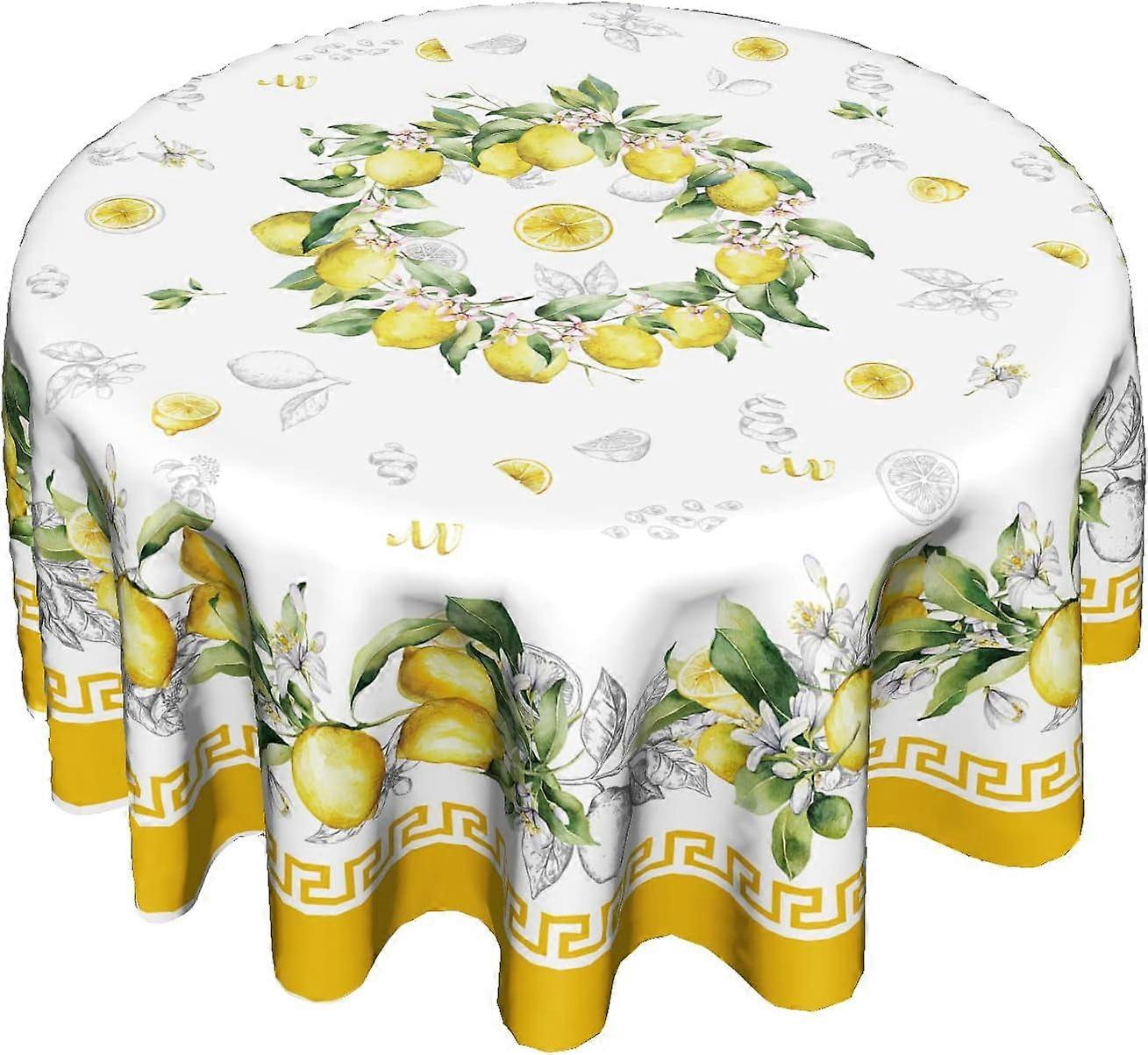 Lemon Round Tablecloth 60", Yellow Citrus Summer Design, Vintage Wrinkle-Free Circular Table Cover for Dining, Party & Holiday Decor
