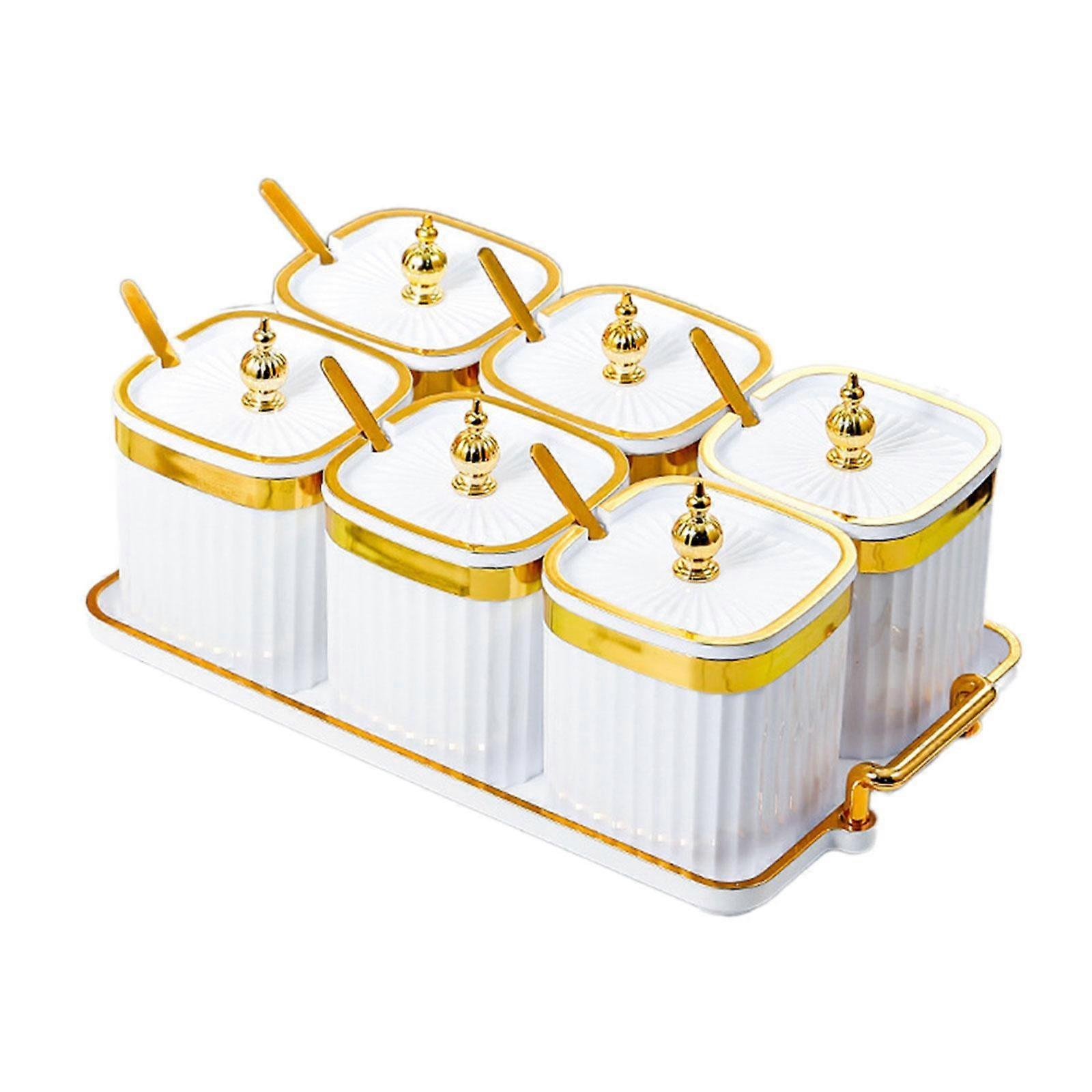 Divided Snack Serving Platters with Dustproof Cover And Spoon, Luxurious Snack Plate Appetizer Serving Tray for Parties in The Kitchen White 6 Grids.Divided serving platters can be to store nuts, dried fruits, snacks, fruits, appetizers, candies, etc. And can also be as a condiment box, seasoning jars.Dried fruit snack container is made of PP material, elegant and practical, sturdy structure and long service.This snack containers with dustproof lid, silicone rings cover can effectively seal the food or seasoning inside the container, and keep food longer time.Each divided serving platter with spoon, can be placed individually use. Metal storage holder with double handles for easy to move anywhere.Food storage container is suitable for home, kitchen, dining room, restaurant, party, living room, office and other occasions.Divided Serving Platter Dried Fruit Snack Tray. Fruit Container with Lid Tray Snack Container. Appetizer Serving Tray with Stand Snack Dishes. Multifunction Snack Serving Tray Organizer. Divided Serving Container Candy Dish Platter. [Multifunctional]: Divided serving platters can be to store nuts, dried fruits, snacks, fruits, appetizers, candies, etc. And can also be as a condiment box, seasoning jars. [Sturdy Material]: Dried fruit snack container is made of PP material, elegant and practical, sturdy structure and long service. [With Spoon and Storage Holder]: Each divided serving platter with spoon, can be placed individually use. Metal storage holder with double handles for easy to move anywhere. [Occassions]: Food storage container is suitable for home, kitchen, dining room, restaurant, party, living room, office and other occasions. [Dustproof Lid]: This snack containers with dustproof lid, silicone rings cover can effectively seal the food or seasoning inside the container, and keep food longer time.
