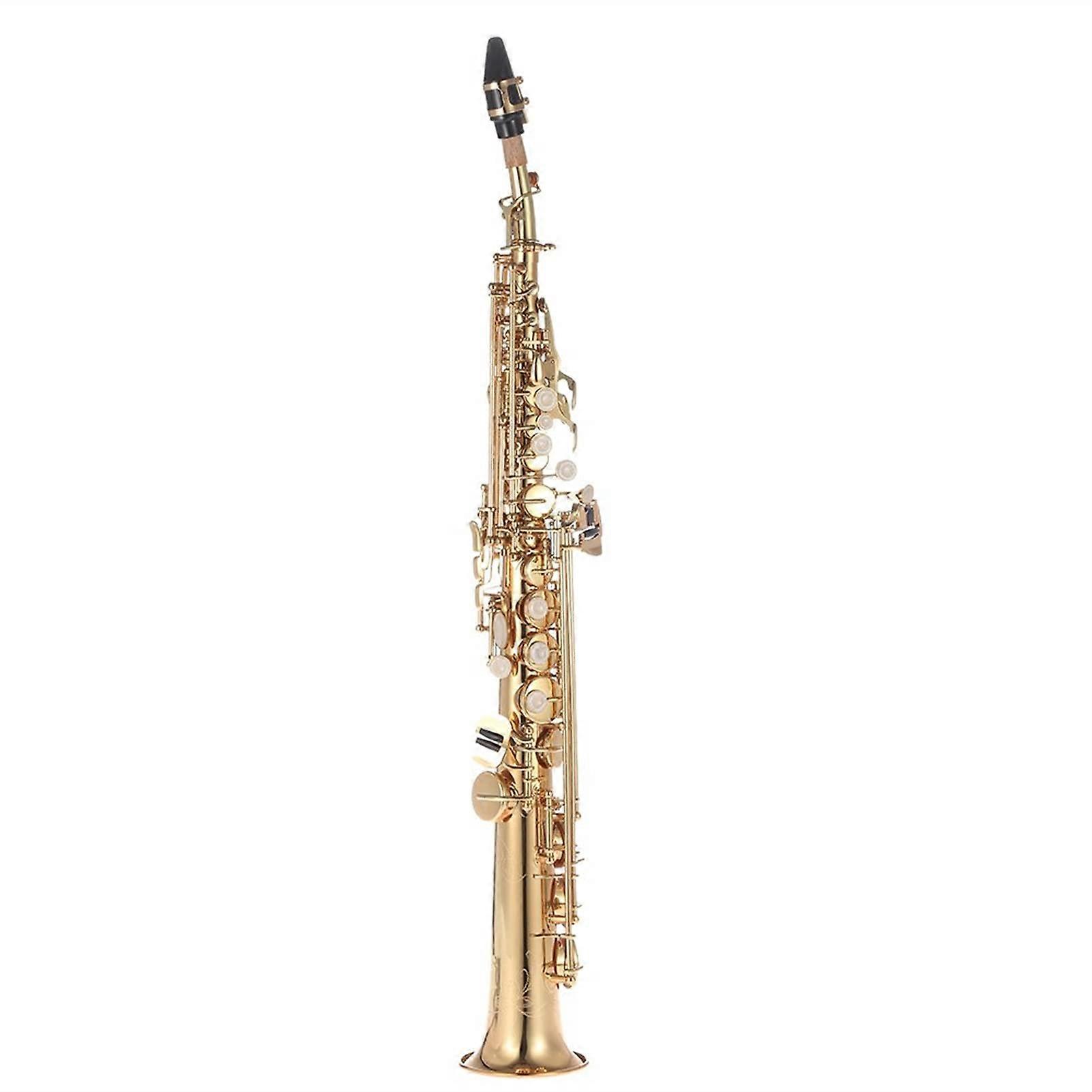 Soprano Saxophone Bb B Flat Gold Brass with Case for Beginners, Natural Shell Keys, Carved Design