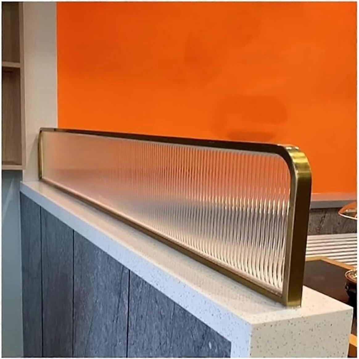 Desktop Divider Privacy Screen Key benefits Creates immediate privacy and visual separation on tables and counters without permanent construction. Reduces visual distractions and helps customers or occupants feel more comfortable in shared spaces. Durable, lowmaintenance design that fits hospitality, commercial, and residential settings. Main features Constructed with a stainless steel frame and striped glass panel for stability and a clean, minimalist look. temperature baked finish resists fading and maintains appearance over time. Frosted matte surface on the glass provides privacy while allowing light transmission. Rounded, polished corners for safer handling and reduced risk of bumps. Sizes and compatibility Panel heights available: 30 cm or 50 cm. Panel lengths available: 50, 60, 70, 80, 90, 100, 110, 120 cm. Example reference size: 30 x 50 cm (11.81 x 19.68 in). Choose the height and length that match your table, counter, or desk dimensions. Durability and finish Stainless steel frame plus striped glass provides strong, stable panels that resist deformation. temperature baked paint finish prevents color fading. Waterproof and washable surface for easy cleaning. Installation and maintenance Mounted using screws for secure attachment to desktops, counters, or partitions. Simple installation steps make it suitable for permanent or semipermanent setups. Wipe clean with a damp cloth; resistant to common stains and splashes. Practical applications Restaurant or cafe table divider to provide discreet separation between parties. Office or study desk screen to reduce visual interruptions and create focused work zones. Hotel front desk, bar, classroom, or waiting area divider to segment space while maintaining a professional appearance. What makes it stand out Combines a minimalist aesthetic with practical privacy protection. Multiple size options allow tailored fit for different furniture and spaces. Robust materials and a faderesistant finish ensure long service life with minimal upkeep.