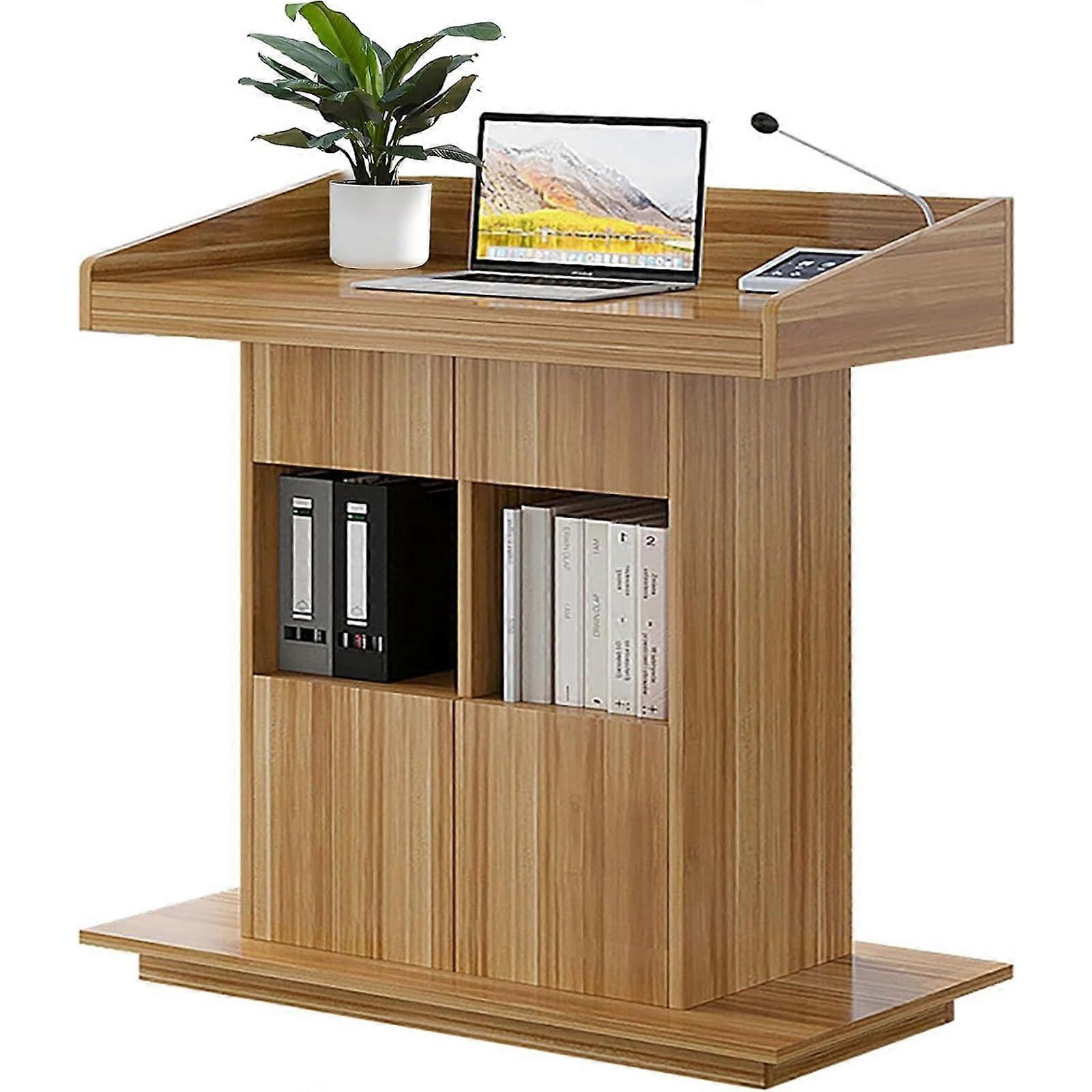 FloorStanding Lectern, Wooden Pulpit A sturdy, professional lectern designed for clear presentations, lessons, and sermons. Built from density fiberboard with a minimalist multifunctional layout, this freestanding lectern organizes materials, supports stable delivery, and fits a variety of venues. Key benefits Organized speaking area: Multitiered storage keeps notes, books, and items within reach while concealing larger items for a tidy appearance. Reliable stability: Prefinished panels and robust hardware provide strong support. Raised nonslip edges on three sides and a nonslip base help prevent items from sliding and reduce wobble during use. Ample workspace: Choose between two desktop widths to suit your needs while keeping devices, notes, and books comfortably accessible. Easy setup and maintenance: Complete hardware kit and straightforward assembly steps let most users install the lectern quickly. Smooth finished surfaces wipe clean with a cloth. Features Material: density fiberboard for a durable, finished look Storage layout: drawer for items, open middle shelf for books and notes, doubledoor cabinet beneath for larger items Edge protection: Raised, nonslip edges on three sides of the work surface Stable base: Nonslip feet for secure placement on hard floors Surface care: Smooth finish that cleans easily with a damp or dry cloth Assembly: Includes all hardware for quick installation Specifications Available dimensions: 31.5 inches x 19.7 inches x 44.7 inches; 39.4 inches x 19.7 inches x 44.7 inches Available colors: Gray, White, Dark Walnut, Light Walnut Suitable settings: Classrooms, Conference Rooms, Churches, Weddings Typical use scenarios Classroom lecture: Store lesson plans and reference books on the middle shelf, keep items in the drawer, and present from a stable, organized surface. Conference presentation: Use the larger desktop option to accommodate a laptop and notes while keeping additional materials concealed in the lower cabinet. Church service or wedding ceremony: Maintain a clean pulpit appearance with hidden storage for service materials and a nonslip surface for hymnals and scripts. Note Please verify podium dimensions before ordering to ensure the lectern fits your space.