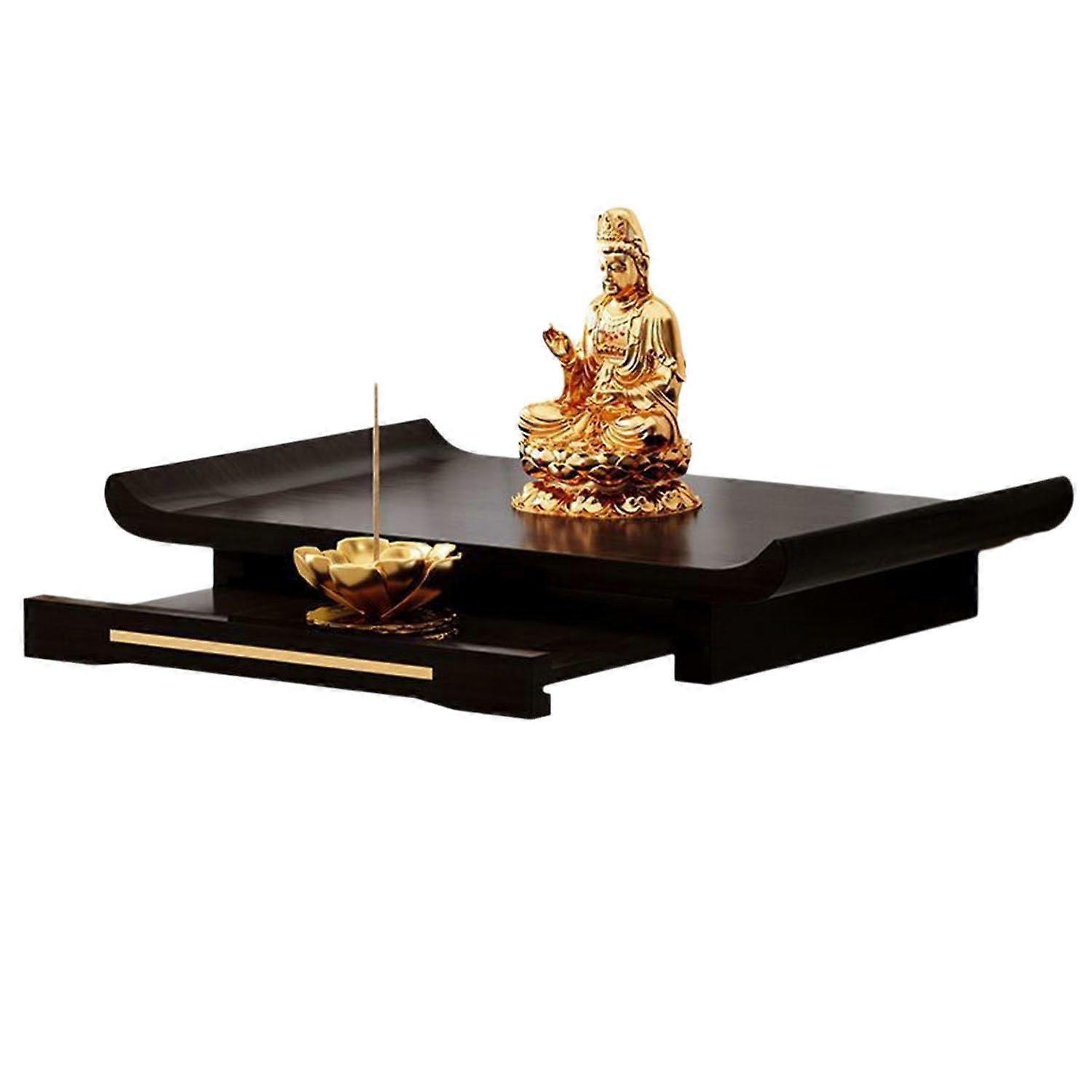 Solid Wood Wall Mounted Altar Table with PullOut Shelf, Foldable Puja Shelf for Space Saving Spiritual Display, Black 38x25cm
