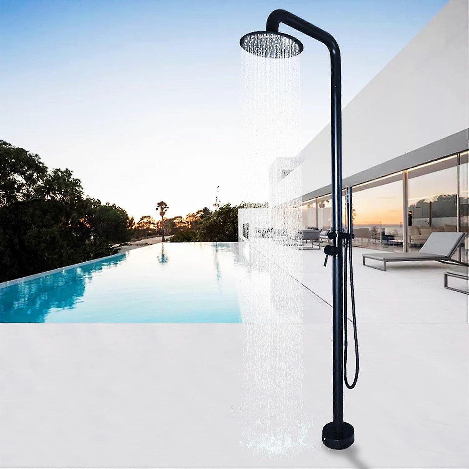 Freestanding Outdoor Shower, Matte Black Stainless Steel with Handheld and Body Jets for Poolside