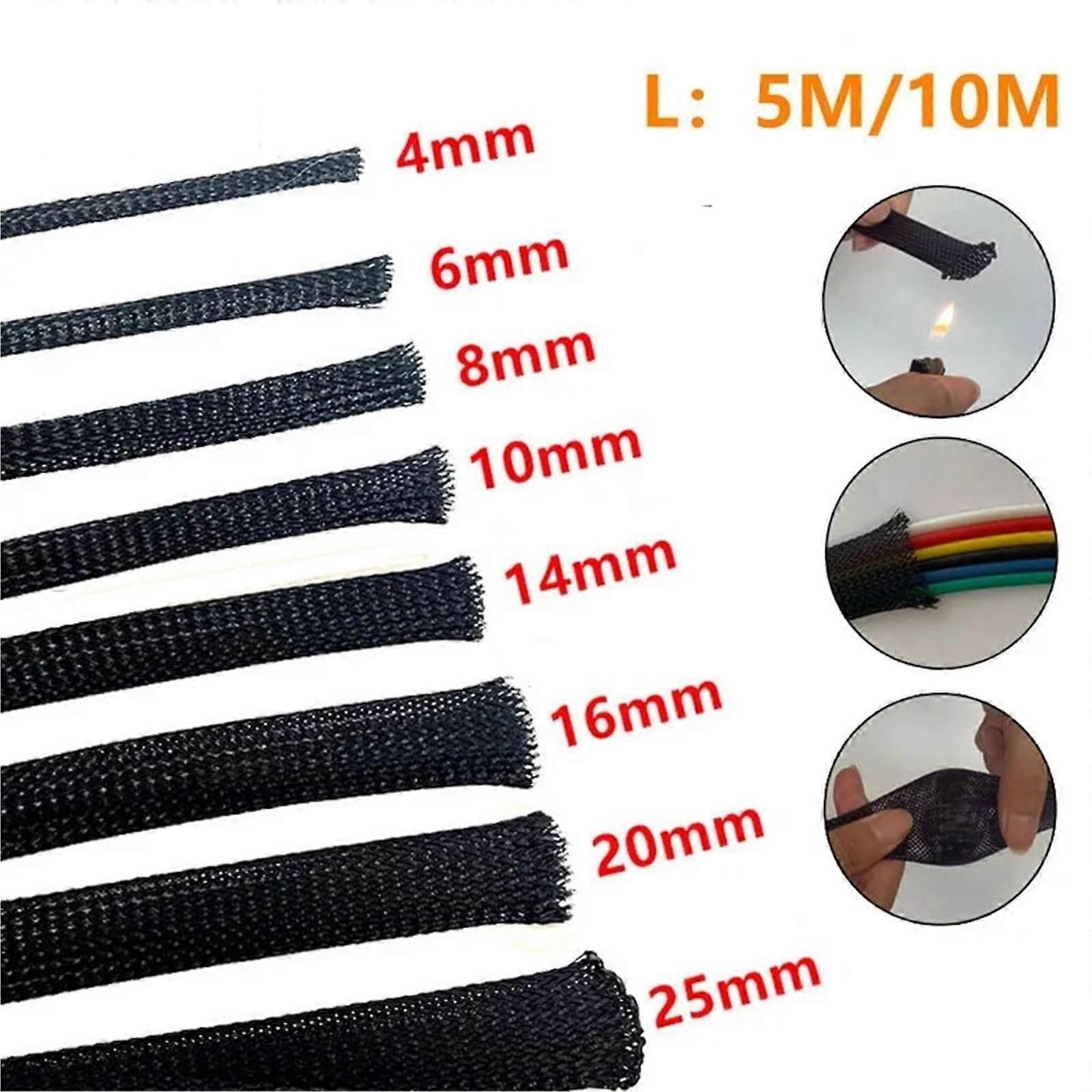 10mm PET Expandable Braided Cable Sleeve 5M Black Wire Cable Protector for Neat Cable Management