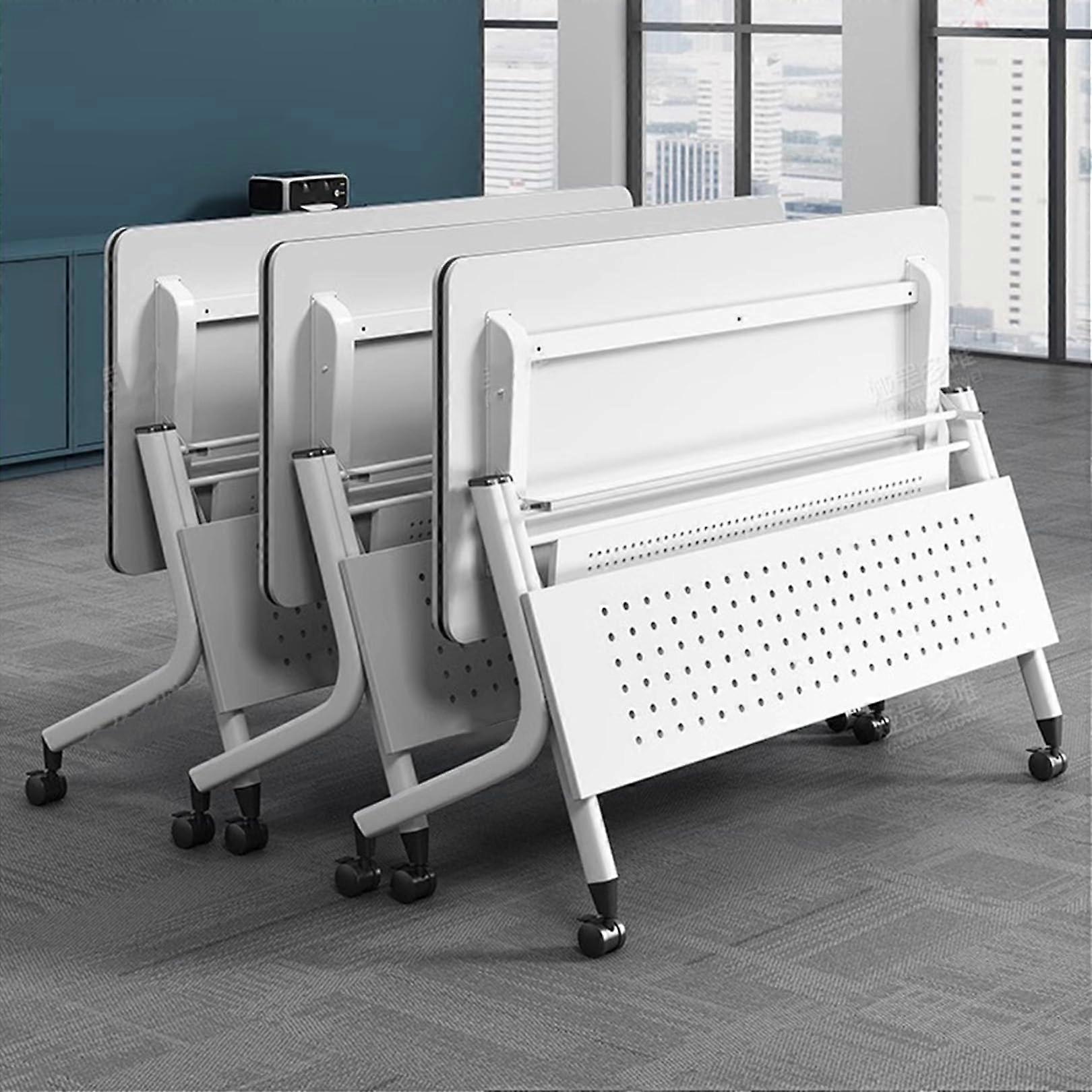 3 Pack White Folding Conference Tables with 360° Lockable Wheels, Space‑Saving Foldable Office Meeting Set