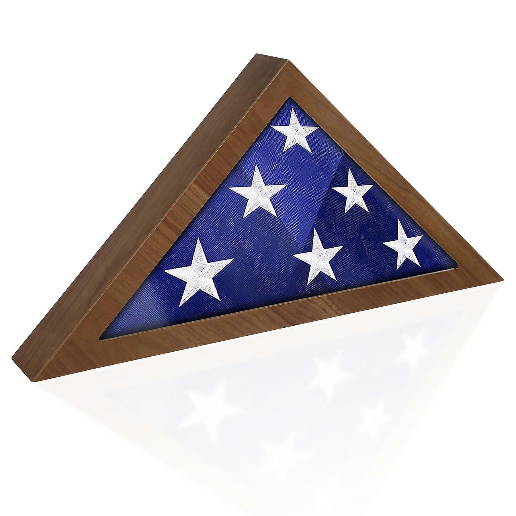 Burial Flag Display Case for 5x9.5 American Flag, Walnut Military Memorial Frame Wall Mount