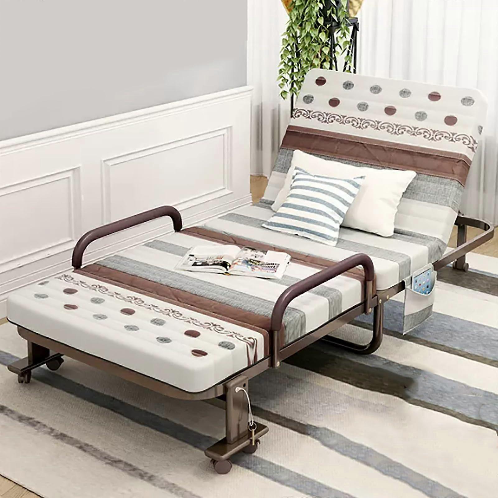 Size: 192x80x30cm Color: White Key benefits Versatile sleeping and seating solution that converts between a single bed, sofa, and leisure chair with minimal effort. Saves space and reduces the need for multiple pieces of furniture in small apartments, guest rooms, dorms, or office rest areas. Easy to move and store while remaining stable when in use. Product features Adjustable backrest: Six headrest positions allow you to set the backrest for reclining, upright seating, or flat sleeping configurations to match different activities. Robust construction: Reinforced allsteel frame provides durable support and comfortably supports up to 300KG/660. Smooth mobility with stability: Eight rollers on the base make it simple to move the unit between rooms; each wheel can be locked to prevent wobbling and secure the bed in place. Practical storage and convenience: Side pockets keep glasses, phones, magazines, or remotes within reach. A liftable armrest adds convenience for sitting and reading. Clean storage included: A dustproof storage bag helps keep the folded bed clean when not in use. Function, compatibility, and performance Size 192x80x30cm makes this folding bed suitable for single sleepers and compatible with standard single bedding dimensions. White finish fits a range of interior styles and room decors. Designed for frequent folding and repositioning without compromising structural stability, making it appropriate for shared living spaces and multipurpose rooms. Use scenarios Guest room: Fold out a comfortable single bed for overnight visitors, then fold and store it during the day to up space. Living room or studio apartment: Use as a sofa or recliner during daytime and convert to a bed at night, reducing the need for extra furniture. Office or rest area: Provide a convenient place to sit or take short rest breaks, with wheels for easy relocation and a lock to keep the unit steady while in use. What you get A compact, multiposition folding bed measuring 192x80x30cm in white, with a reinforced allsteel frame, eight lockable rollers, side storage pockets, a liftable armrest, and a dustproof storage bag for protection.