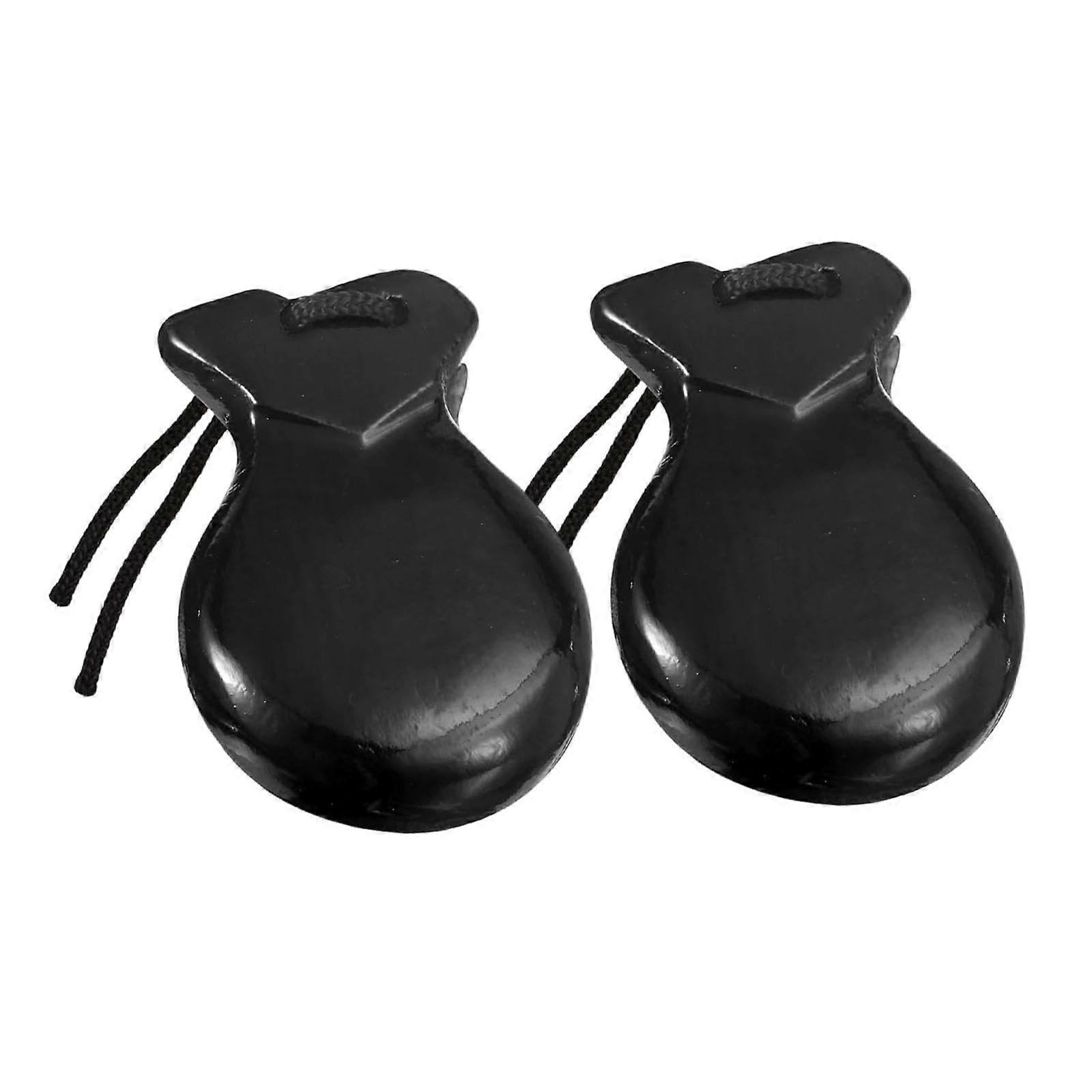 2Pcs Wooden Flamenco Castanets with String for Beginners Music Lessons and Folk Performances Black