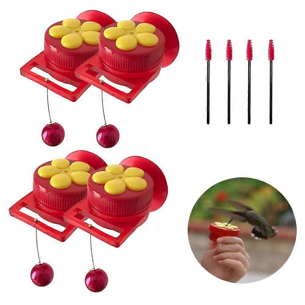 Red Hummingbird Feeder Set of 4 with Perch for Window or Handheld Use, Easy Coordinated Setup