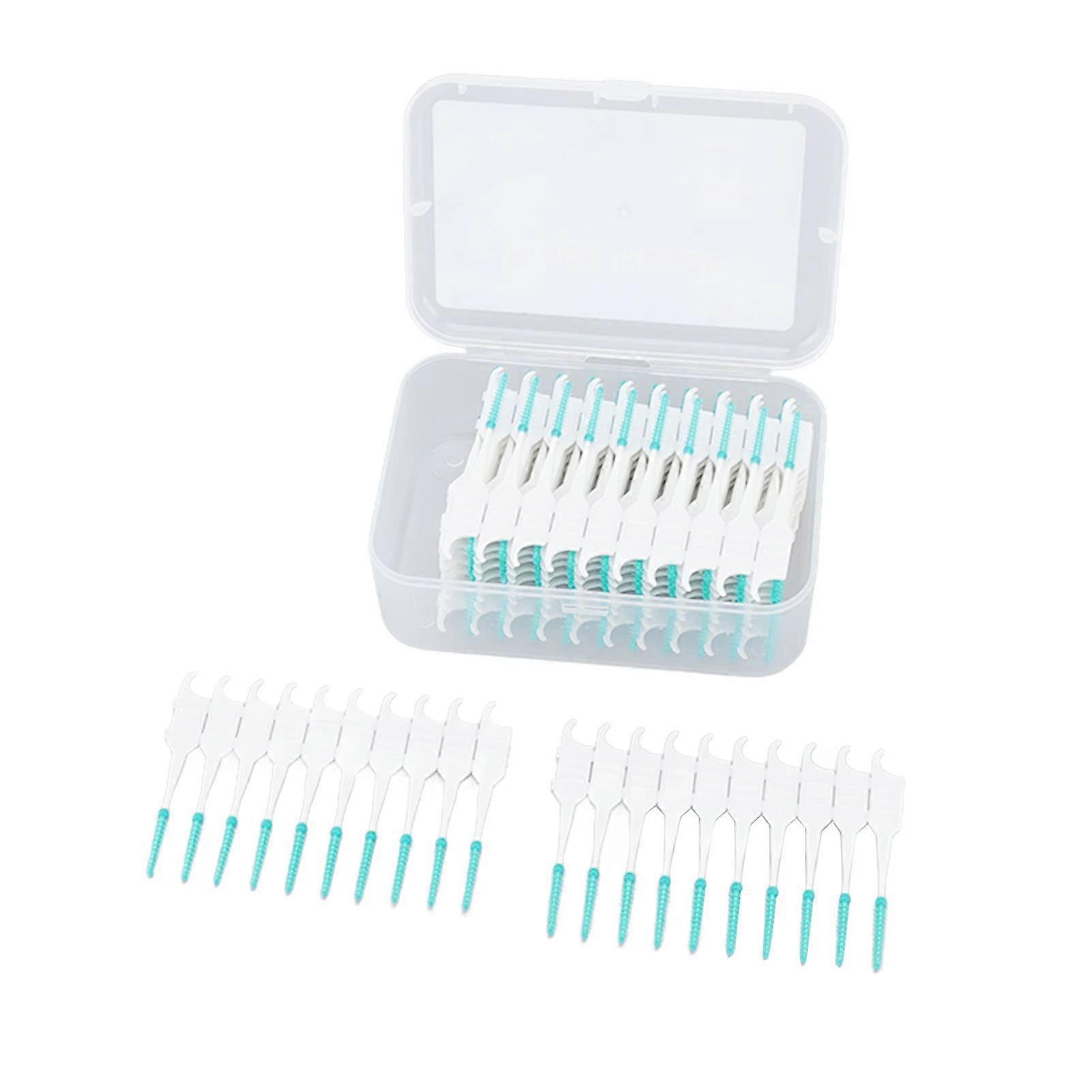 Interdental Brush 200pcs Mint Green with Case Soft Silicone Toothpick for Oral Care